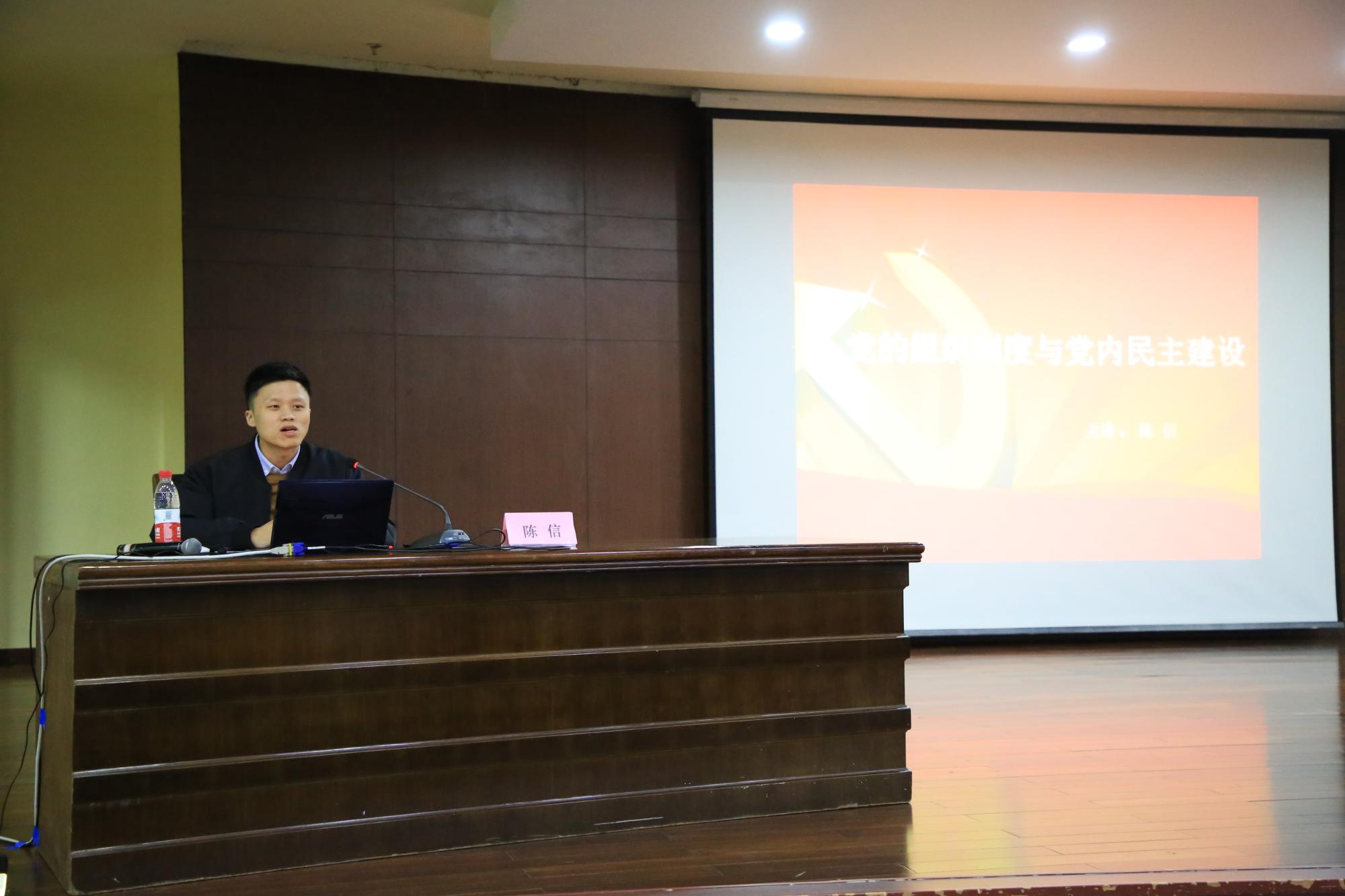 陈信老师以《党的组织制度与党内民主建设》为主题,以“他心目中最厉害的创业团队是中国共产党”的趣味故事切入课堂,向同学们介绍了中国共产党的历史,强调了共产党在发展过程中遇到曲折仍艰苦奋斗不畏牺牲的崇高精神。并详细讲解了党的根本制度——民主集中制,从制度的由来、“六条原则”的内涵到“三个阶段”发展过程介绍,使同学们对党的制度有了更深刻的认识。最后,陈老师以保尔柯察金的名言与同学们共勉,呼吁同学们努力学习努力工作,为实现共同理想和崇高人生追求而奋斗。