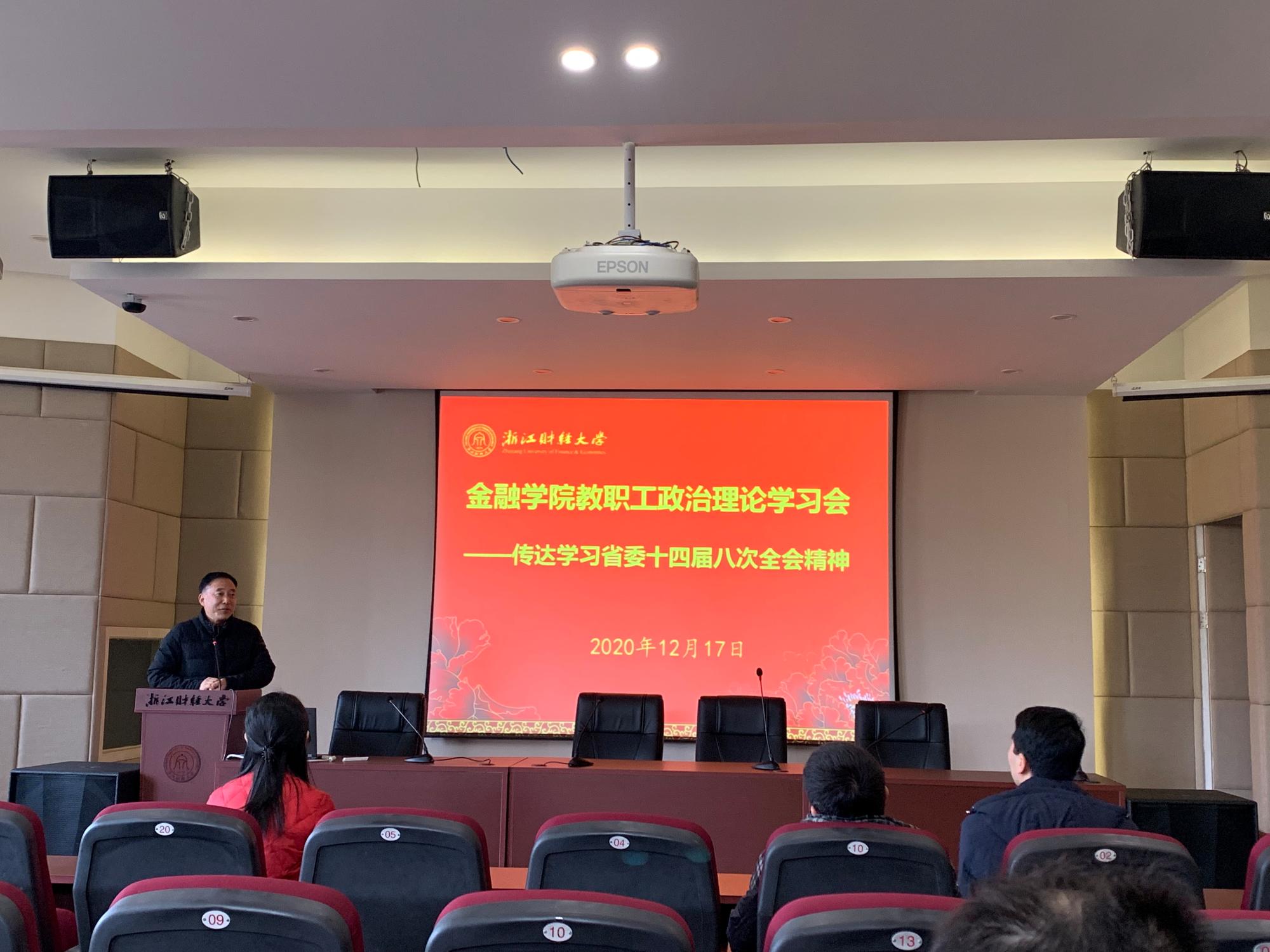 在3-202报告厅召开教职工政治理论学习会,专题学习省委十四届八次全会精神、《高等学校课程思政建设指导纲要》,以及传达学习校“三全育人”文件精神。会议由党委书记蔡国金主持。