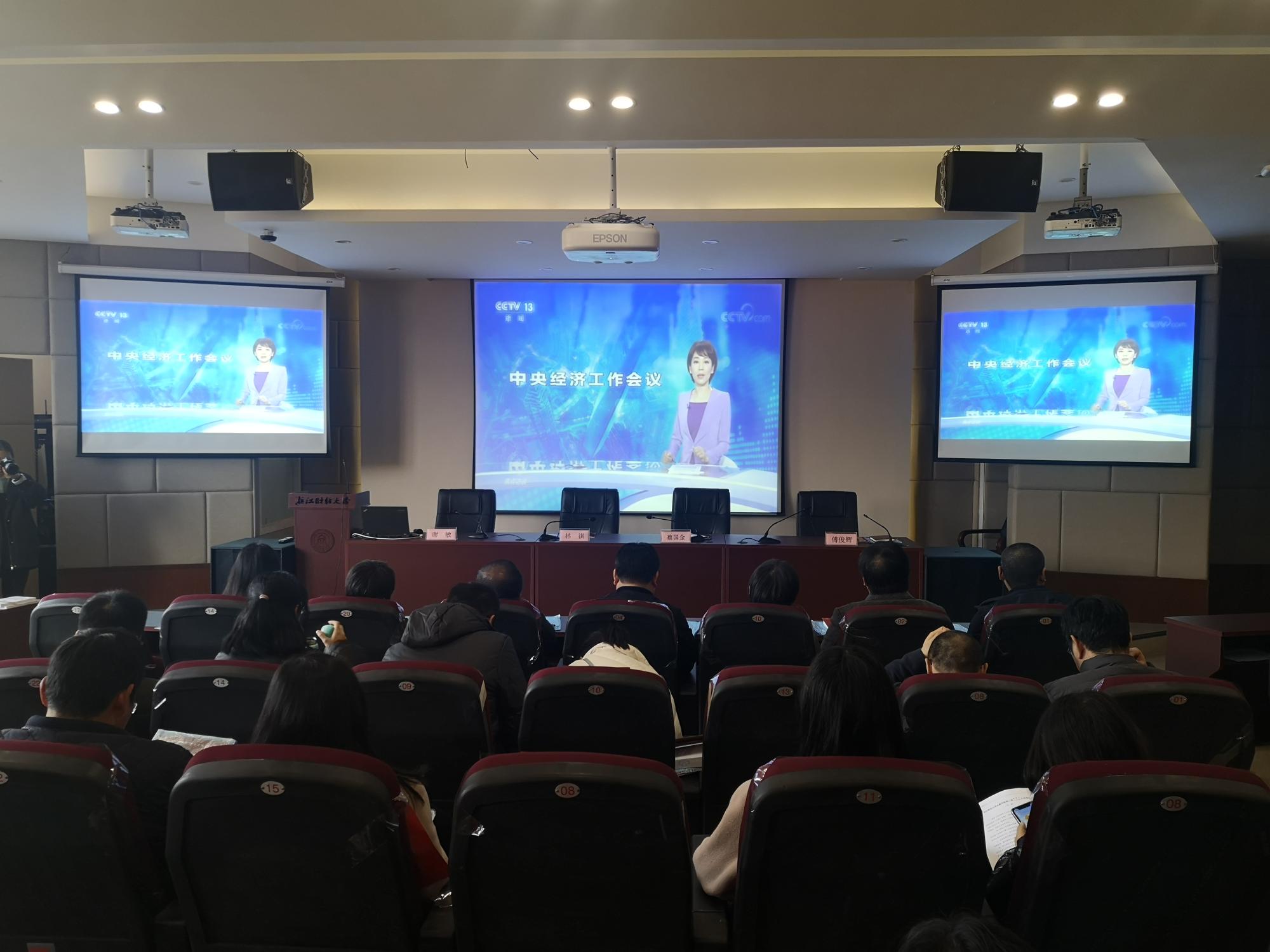召开教职工大会进行政治理论集中学习,以观影的形式专题学习贯彻中央经济工作会议精神,全院教职工参加学习,足球直播线上看