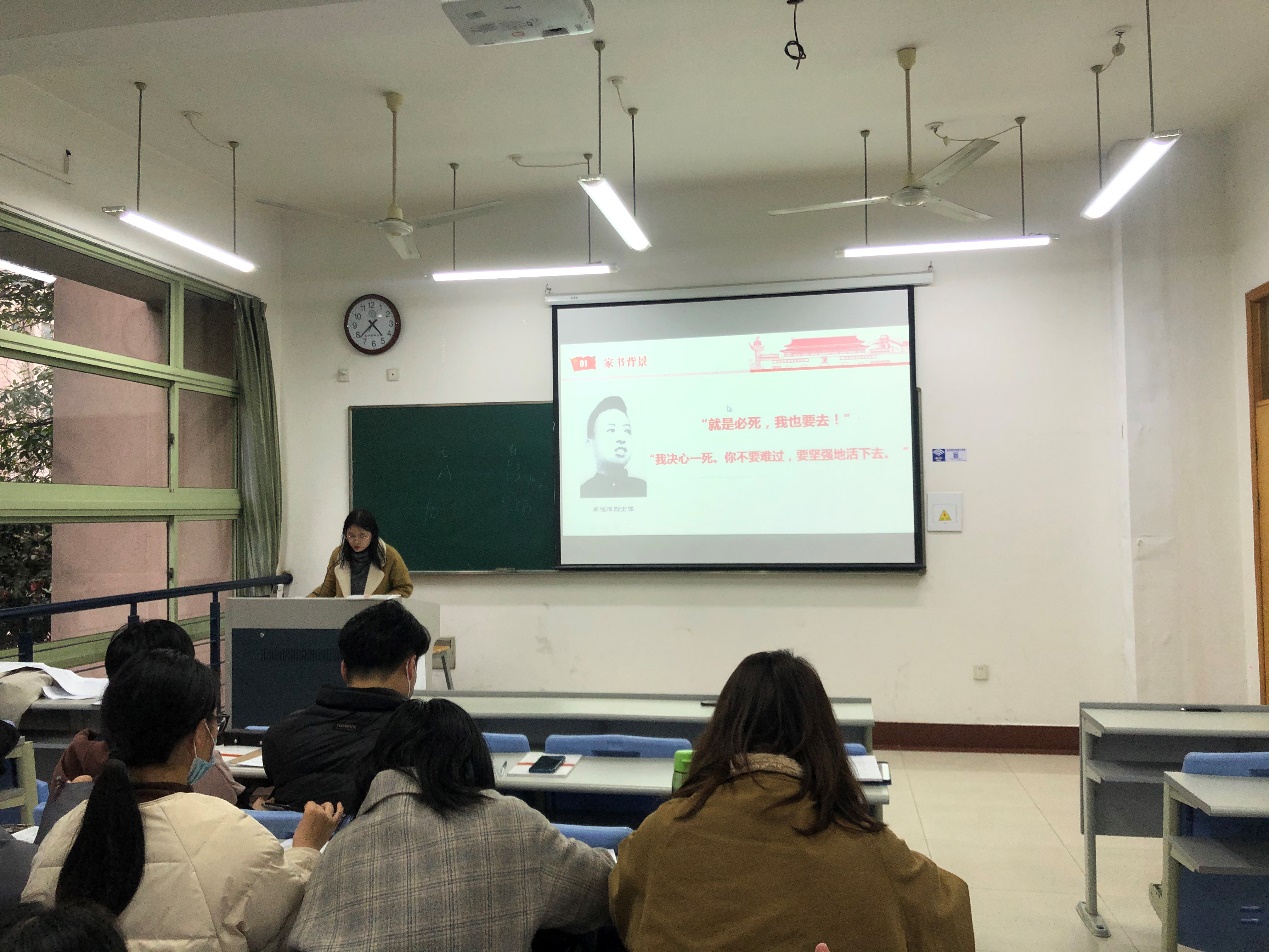 本科生第一党支部开展“一封红色家书”主题党日活动。支部党员茅欣妮同学分享了烈士卓恺泽的一封家书,带领大家走进历史,缅怀先烈。