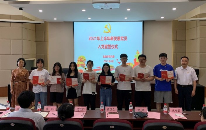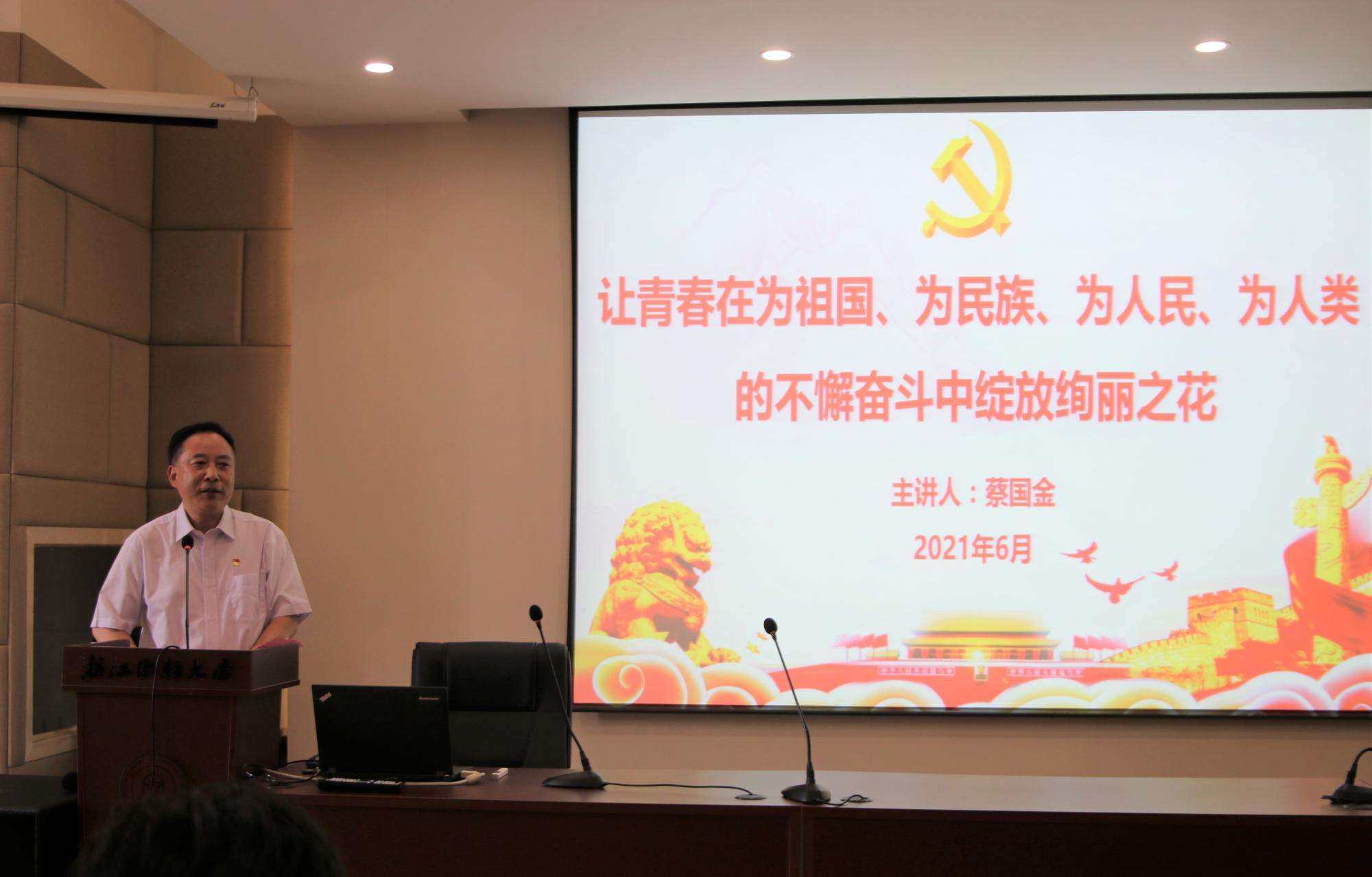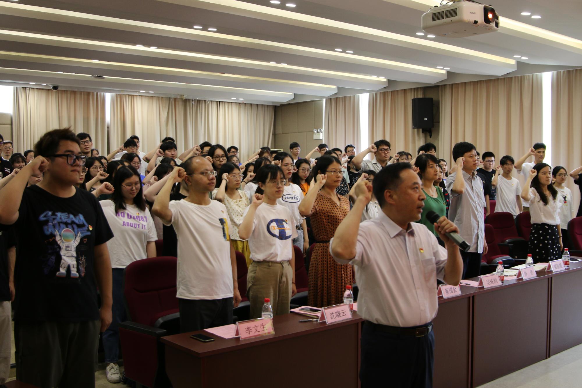 党委书记蔡国金、党委副书记谢敏、各学生党支部书记、老党员代表、2021年上半年新发展的1名教工党员和119名学生党员参加活动。活动由专职组织员翟丽媛主持。