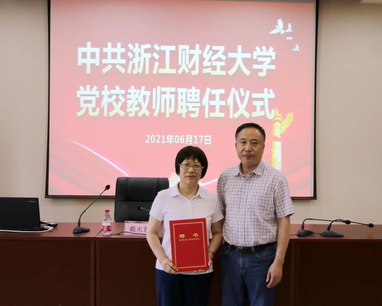 党课开讲前,举行了党校教师聘任仪式,戴水君受邀担任浙江财经大学党校教师,蔡国金为其颁发聘书。戴水君于1997年3月在我校加入中国共产党,拥有经济、法律、管理等丰富的专业背景,曾被评为我校第六届“最美校友”,担任浙江大学MBA校外导师,多次被评为浙江上市公司优秀董秘,获评新浪金麒麟金牌董秘,《中国证券报》金牛董秘奖,《上海证券报》“精锐董秘奖”等。2020年9月,线上看足球