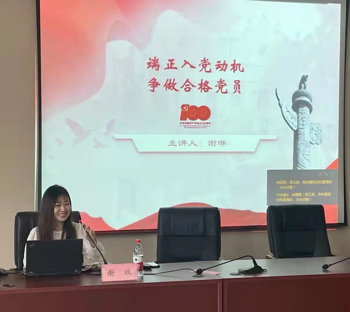 谢琳老师以《端正入党动机,争做合格党员》为主题,首先引入“你为什么入党”的问题,引导学员们树立正确的入党动机,并细致解释了何为入党动机、为什么要树立正确的入党动机以及如何树立正确的入党动机三个问题,并对学员们应该怎样积极创造条件加入中国共产党进行了详细的解说。进一步加深了学员们对党的认识,端正了学员们的入党动机。