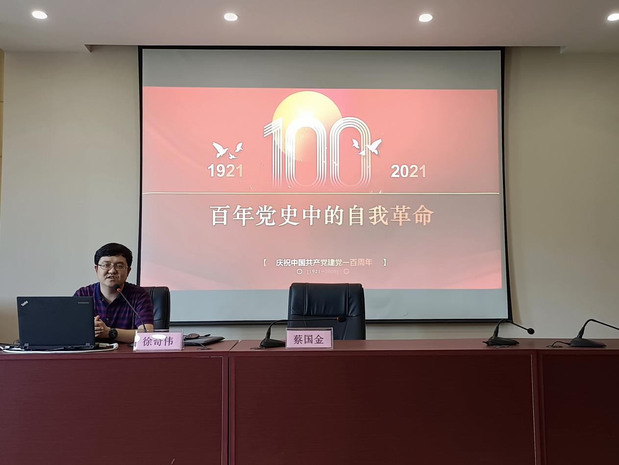 党委书记徐奇伟主讲题为“百年党史中的自我革命”的党课。徐奇伟老师从自我革命是马克思主义政党的内生特质、百年党史六次最具历史意义的自我革命、刀刃向内的自我革命和创新永远在路上三个方面讲述了自我革命的重要性。青年时光非常可贵,要用来干事创业,辛勤耕耘。广大青年要如饥似渴,孜孜不倦学习,既多读有字之书,也多读无字之书,注重学习人生经验和社会知识,注重在实践中加强磨炼、增长本领。徐书记还强调,共产党员加强学习,就要按照习近平总书记关于学习的系列讲话要求,认清重大意义,明确学习内容,掌握学习方法,增强学习效果。在内容选择上要“知足”,精选对自己有用的知识加强学习。我们要不断自我革命,秉承初心、接续奋斗,做新时代合格大学生党员!