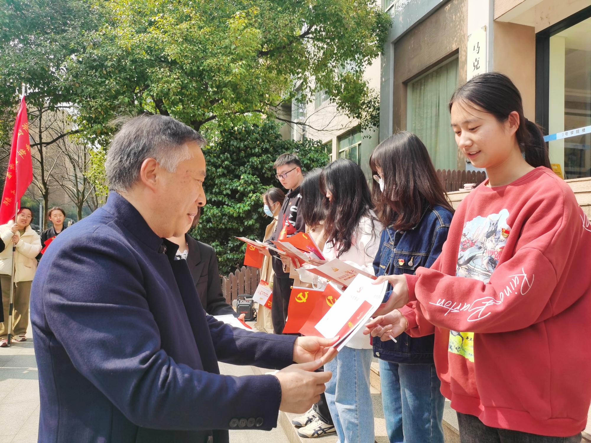 接下来,蔡书记为每一位新发展党员颁发了《中国共产党章程》和《政治生日贺卡》。