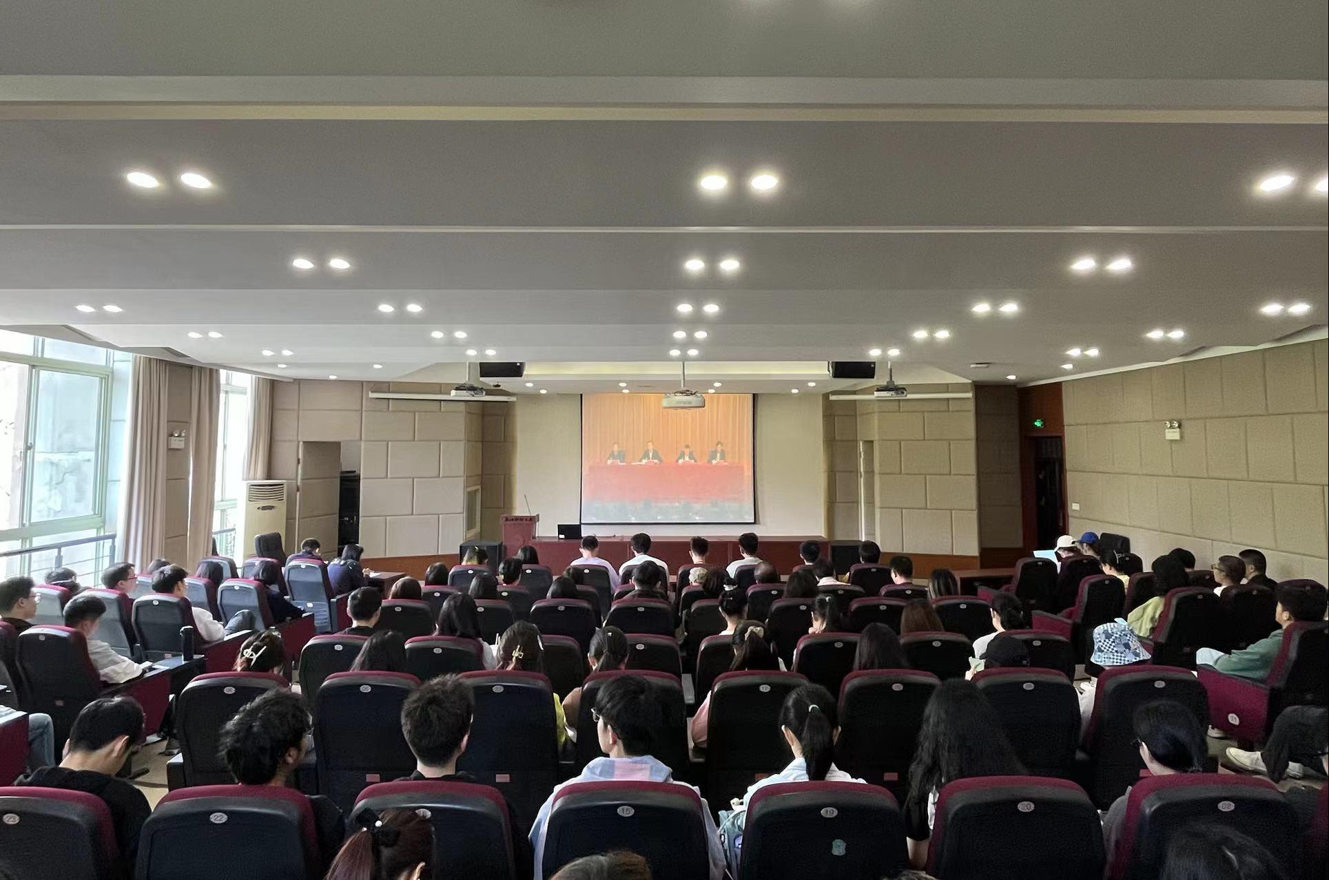 楼202报告厅分会场集中观看“学校深入开展学习贯彻习近平新时代中国特色社会主义思想主题教育动员大会”线上直播。校党委书记李金昌主持会议并作动员讲话。省委第十五巡回指导组组长谢树华作指导讲话。第十五巡回指导组副组长王登先等指导组全体成员出席会议。