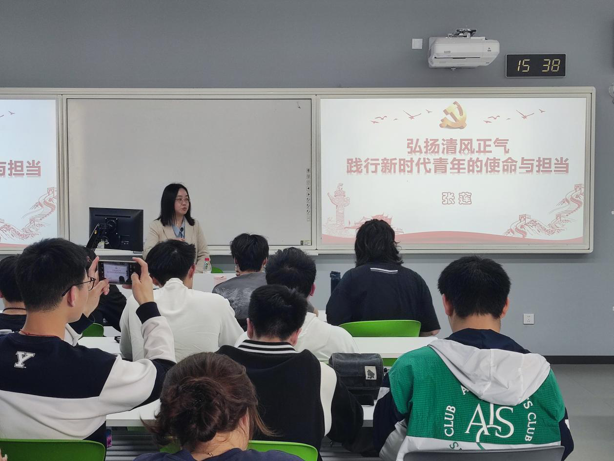张莲《弘扬清风正气,践行新时代青年的使命和担当》为主题,为同学们讲述了清廉的重要性,告诫我们要把清廉建设作为终身课题。从国家层面、行业层面、省域层面、学校层面、国际层面、个人层面六个层面为我们讲述了应该怎样做好清廉建设。“大道笃行远,清廉继世长”,在清廉上出问题,就是对人生的“一票否决”,作为新时代青年,我们应该干净干事,清白做人。