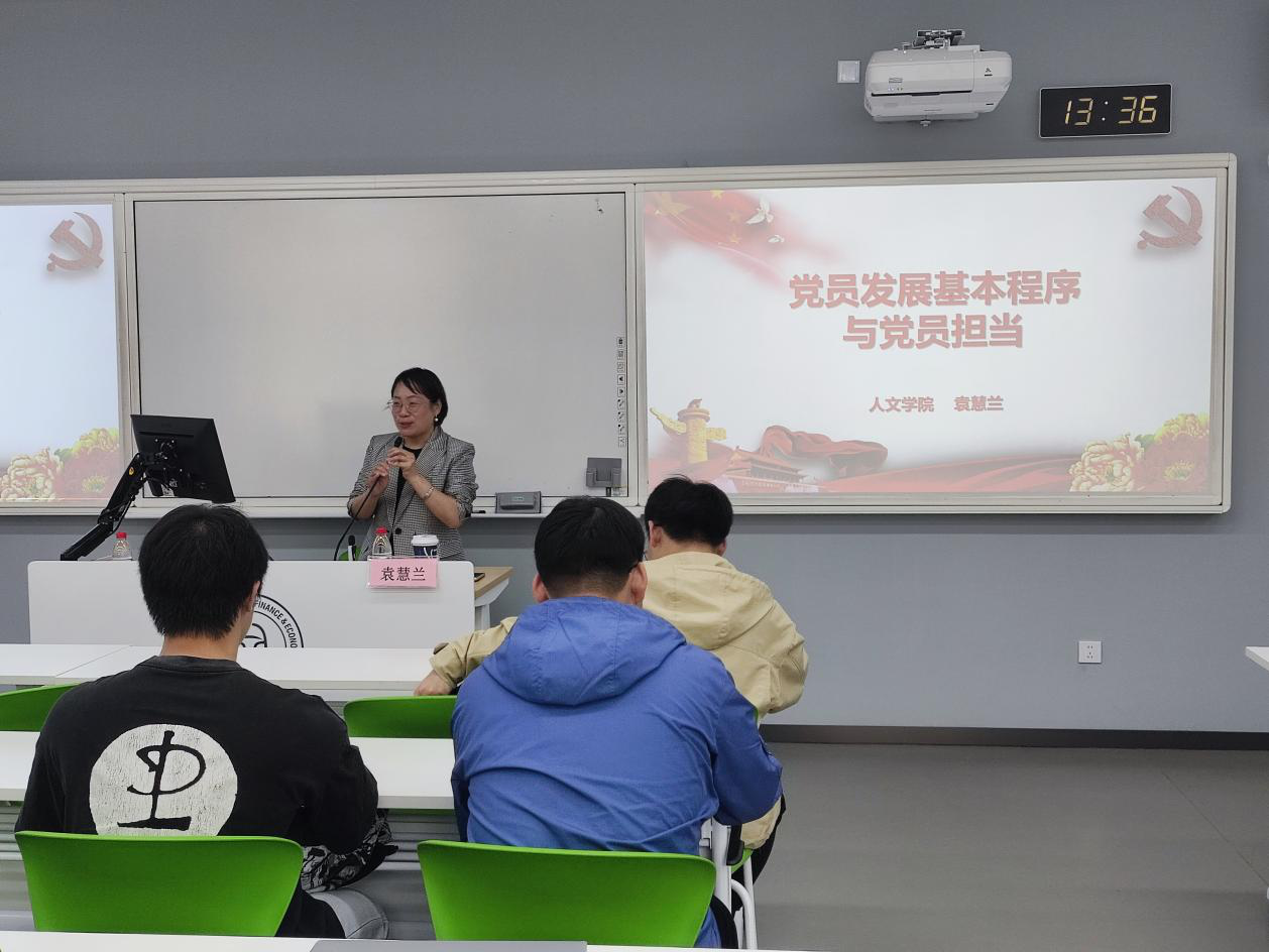 袁慧兰《党员发展基本程序与党员担当》为主题,为我们介绍了党员发展的不同阶段与基本程序,让同学们更加深入地了解了入党程序以及在入党过程中要严于律己。此外,她还向同学们强调了党员的责任与担当,要求同学们在政治上要胸怀祖国、培养良好的政治素养;在道德上要谦和待人、做良善之人;在工作上要认真负责、乐于助人。希望同学们在入党过程中严格要求自己,以更加优秀的姿态向党组织靠近。