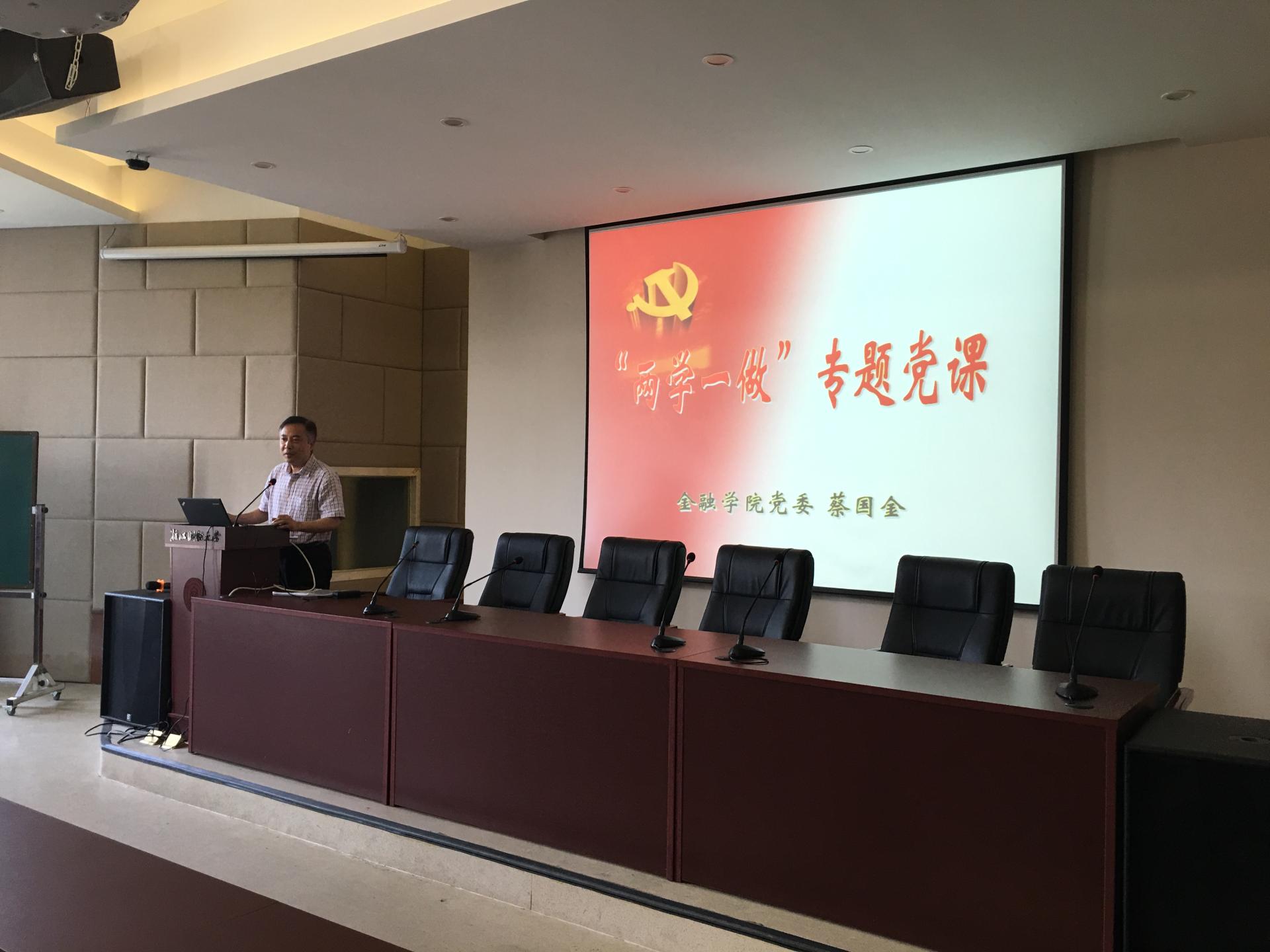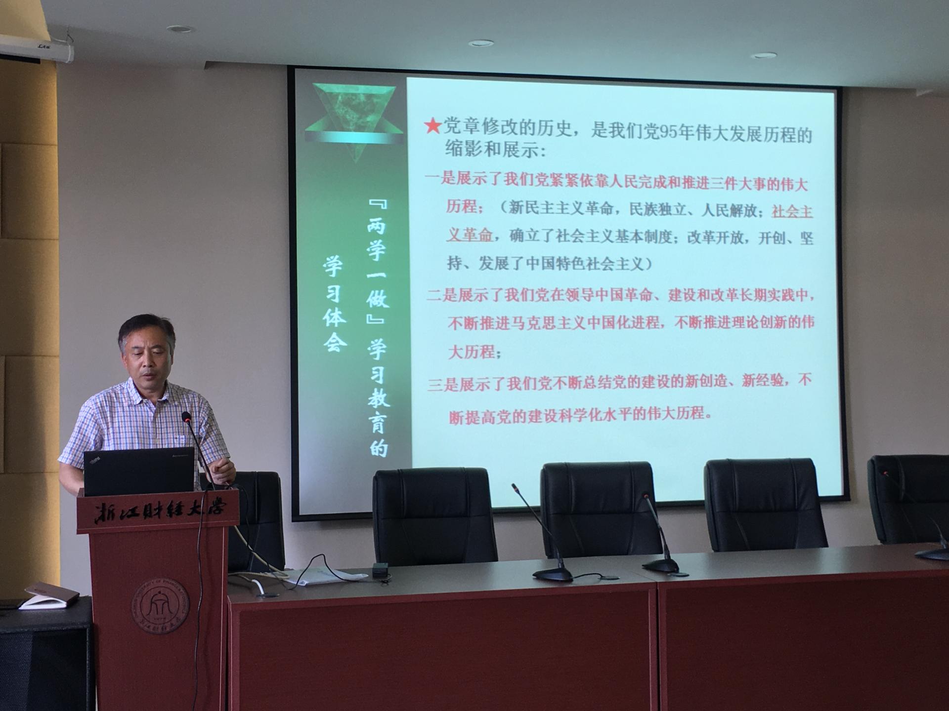 楼报告厅给全体教工党员上了一堂“两学一做”专题学习教育的党课。主要介绍了“两学一做”学习教育的丰富内涵、重大意义和要求,对党章党纲进行了详细解读,对系列讲话进行了概要介绍。重点强调了“两学一做”对共产党员的要求,要求每位共产党员要学习党章党规、学习系列讲话,做合格党员,做到讲政治、有信念,讲规矩、有纪律,讲道德、有品行,讲奉献、有作为。