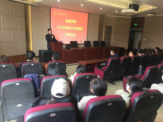 自2013年以来开展CFA实验班所取得的成绩,并对2018级CFA实验班的全体学员作出了祝福以及期望。随后两位学长分享了他们的CFA学习之路,然后高顿代表老师介绍了一些课程安排,要求等等。最后由徐函老师作结束语,2018年级CFA实验班开班仪式完美落下帷幕。