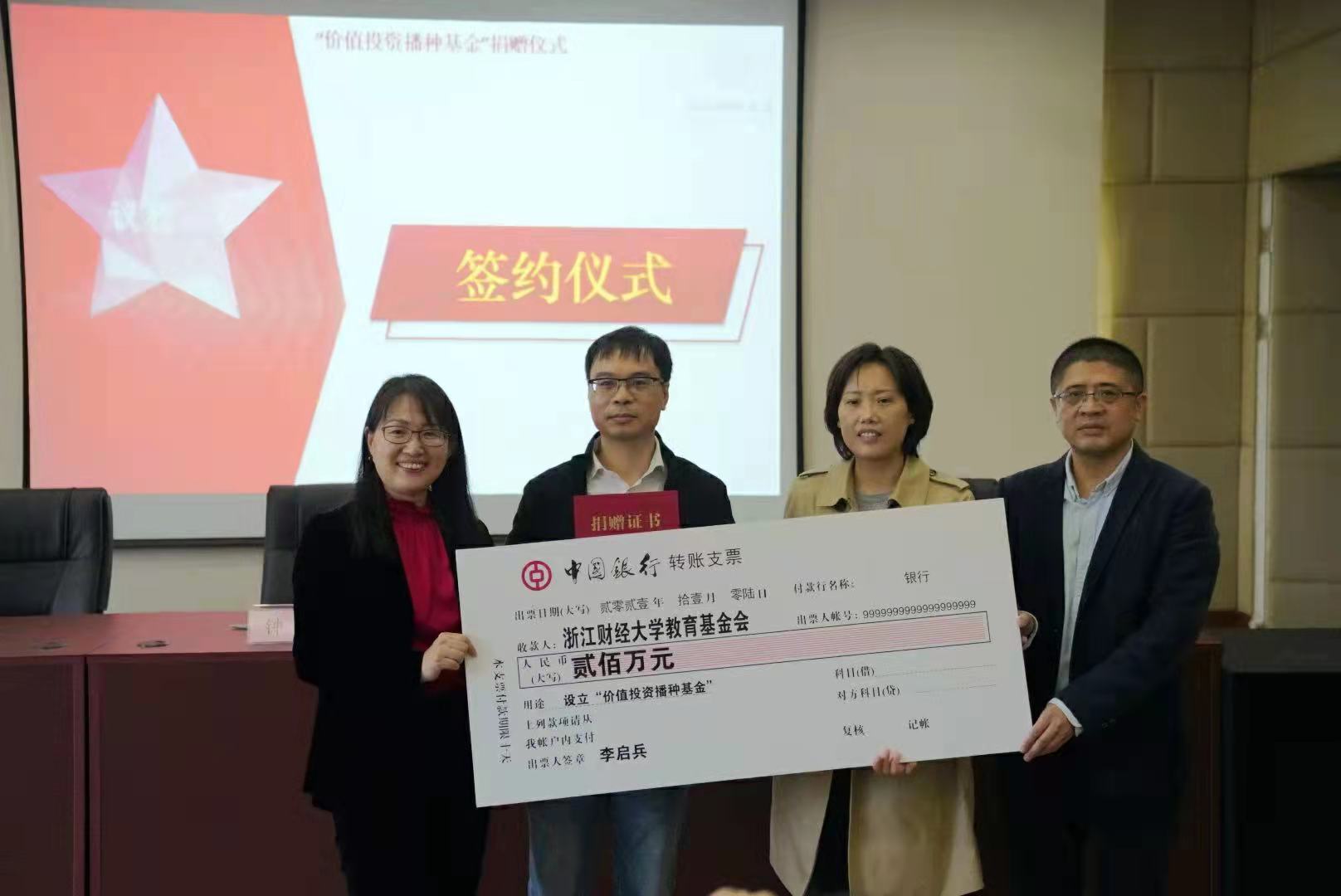 浙江财经大学与盈阳资产校企合作项目(第三期)捐赠仪式在足球直播线上看