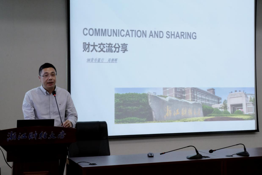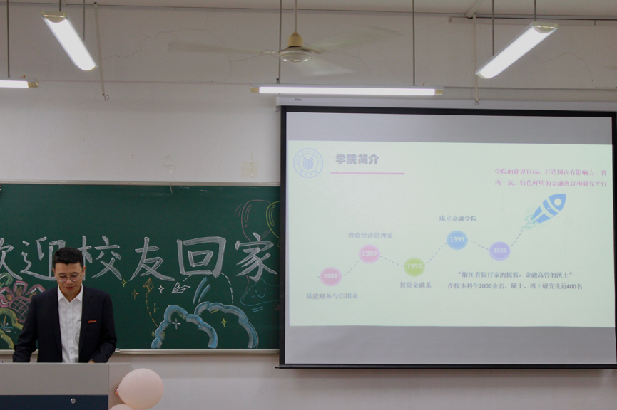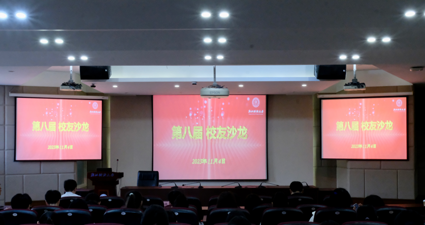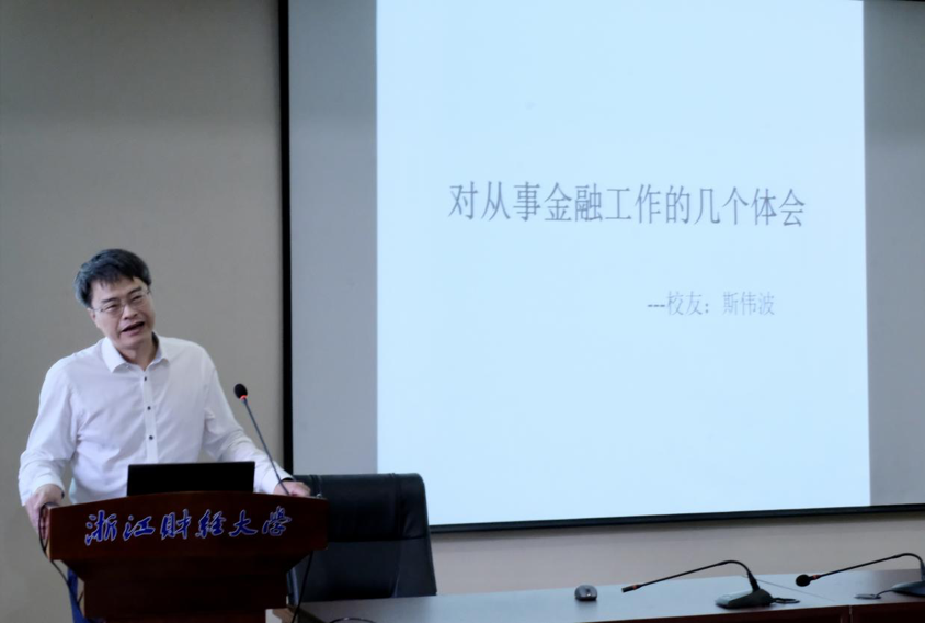 楼202报告厅顺利举行。本次沙龙邀请了万向信托股份公司副总裁、93届校友斯伟波,浙江尚科生物医药有限公司董事长、98届校友周朝晖,浙江银万斯特投资管理有限公司合伙人&投资总监、05届校友赵峰,以及蚂蚁集团网商银行高级产品专家、13届校友余谦等四位优秀校友,与同学们分享他们的个人经历以及关于更好开展金融专业学习的方法。校友们横跨数载时空,将校园与外面的世界巧妙对接,在热情洋溢的氛围当中实现了沟通感情、多角度育人的双重作用。