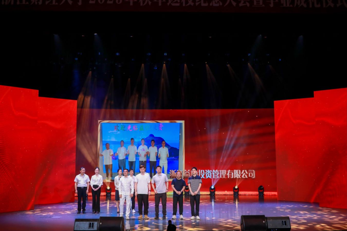 副院长夏红芳,院退休教师徐敏,校社会合作处处长、校友办主任张红英,校党委学工部副部长金国权,校党委研工部副部长林剑,浙江盈阳资产管理股份有限公司创始人、98届校友楼栋,雷速体育官网