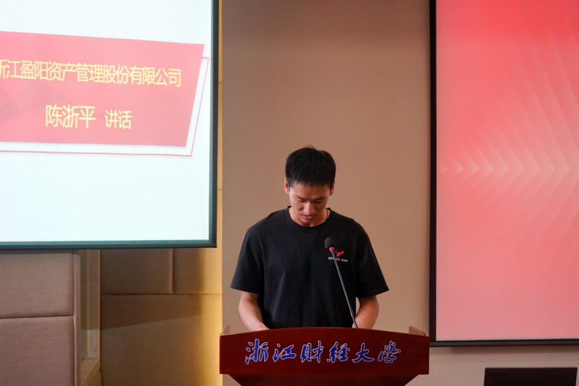 接着,浙江盈阳资产管理股份有限公司陈浙平校友代表讲话。他提到,“盈阳金融突出贡献奖”已评审8年。在足球直播线上看