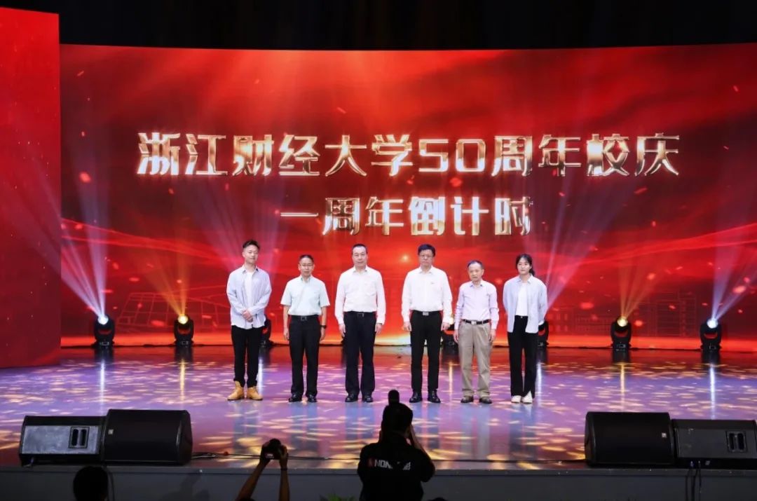 老教师楼远、本科生叶雨欣作为代表与校领导、校友代表共同启动了50周年校庆“倒计时一周年”。