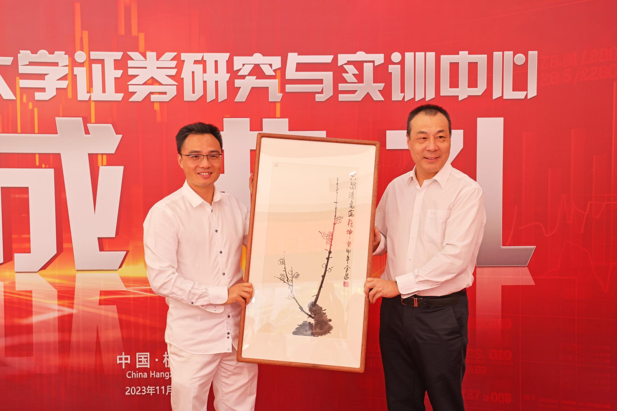 落成典礼上,李金昌代表学校向徐冠华赠送贺礼。徐晓东、徐冠华、戴水君、王聪聪依次发言,对浙江财经大学证券研究与实训中心发展寄予厚望。仪式结束,大家集体参观了解了中心的区块职能和发展规划。