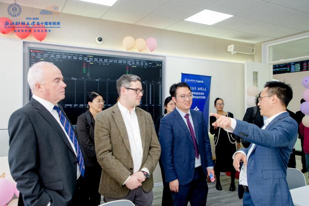 仪式伊始,郑亚莉副校长发表了热情洋溢的讲话,强调了此次揭牌仪式对推动中英两校在金融和证券领域深入合作的重要性。接着,安德鲁副校长致辞,重申了此次合作在提升两校金融研究与教育质量方面的战略意义。徐冠华董事长分享了对中心未来发展的期待,寄予厚望。联合中心的揭幕和剪彩,标志着浙江财经大学与班戈大学在金融研究与教育领域迈出了重要的一步,展现了双方在推动金融创新和人才培养方面的坚定承诺。仪式结束后,与会者参观了证券研究与实训联合中心,深入了解了中心的功能及发展规划。