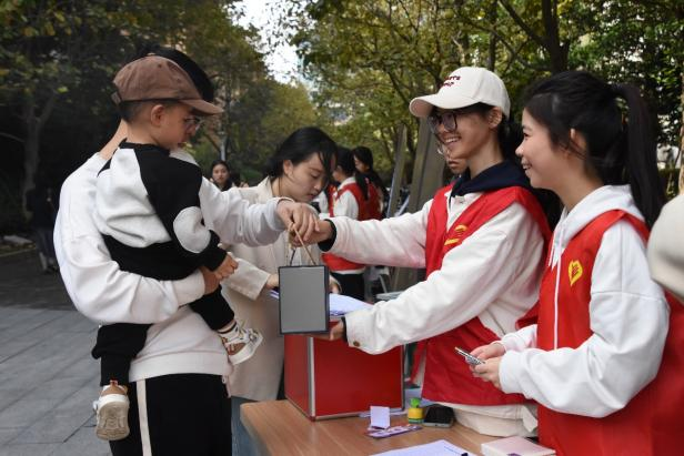 签到处进行签到。学院党委书记黄文礼、副书记陈思佳来到现场,对各位校友表达最热烈的欢迎。签到完成后,志愿者为校友们发放了足球直播线上看