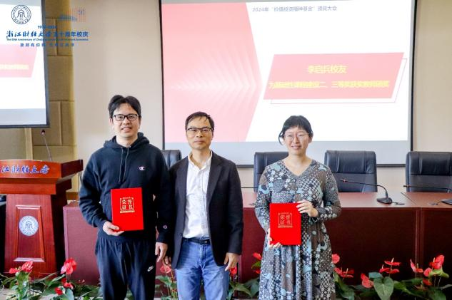 师资队伍建设,促进金融学科专业建设,为社会培养更多优秀金融人才。经评审,刘建和老师荣获本年度“盈阳金融突出贡献奖科研与服务类”金奖,龙怀钢、许跃龄、喻贞、邹静老师荣获“盈阳金融突出贡献奖科研与服务类”银奖。程爽、孔繁岗、陈智杰为获奖教师颁发奖杯及证书。