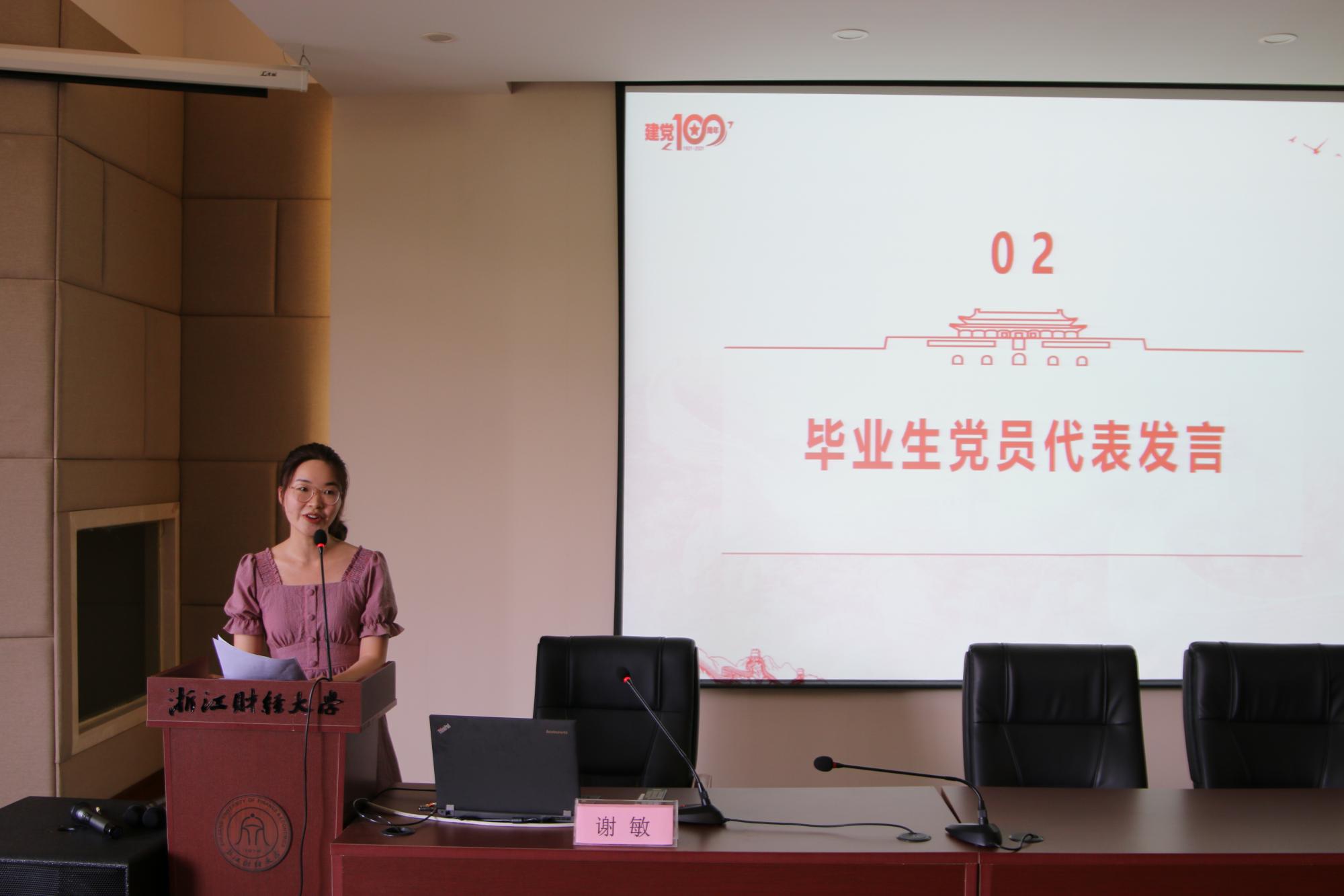 党委副书记、纪委书记谢敏,专职组织员翟丽媛,各学生党支部书记和2021届全体毕业生党员参加了大会。会议由翟丽媛主持。