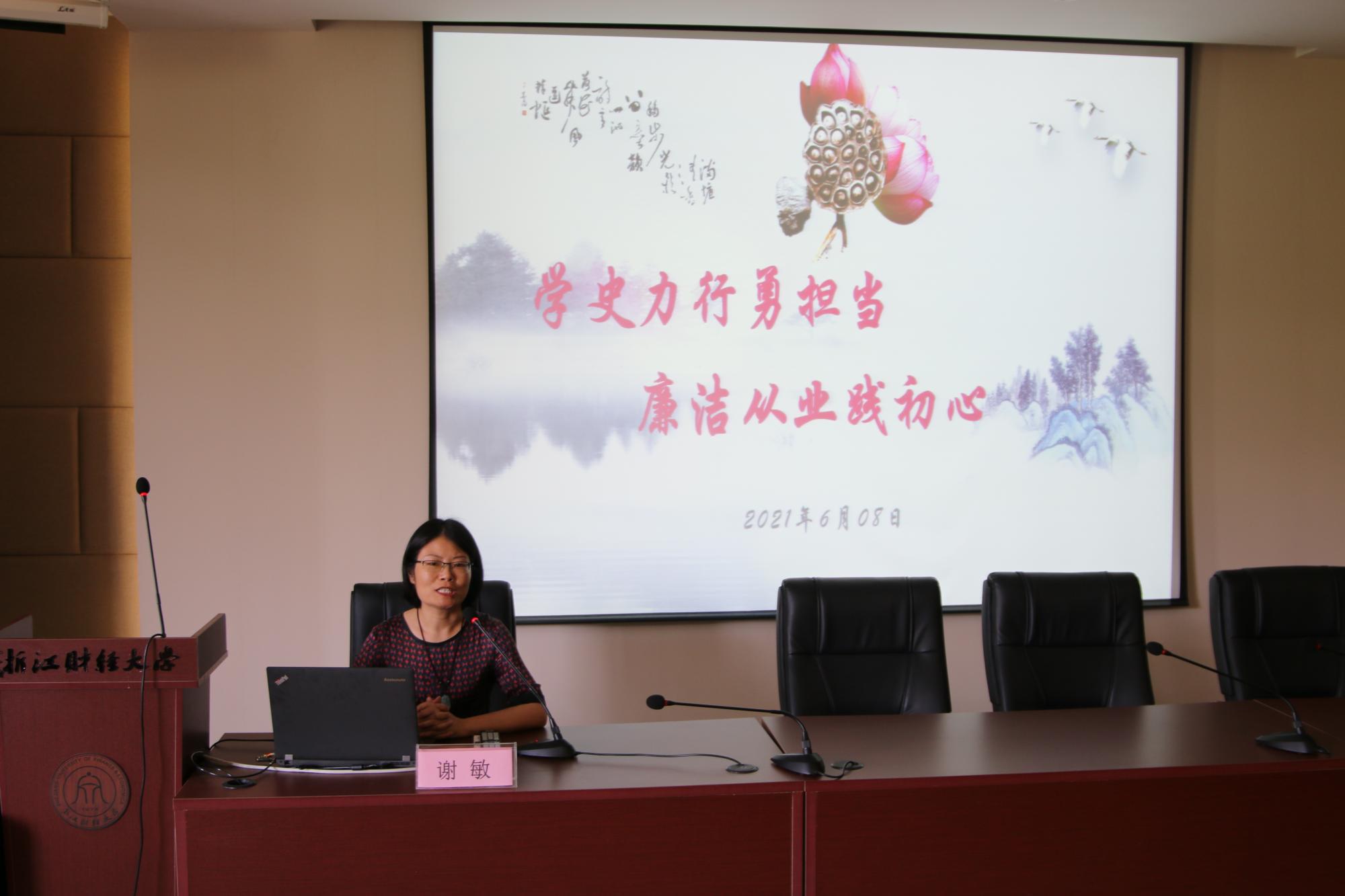 会上,谢敏以“学史力行勇担当,廉洁从业践初心”为主题给全体毕业生党员上了一堂特殊的微党课。她从廉洁之意、廉洁之义、廉洁之路三个方面强调了党员同志必须始终保持清正廉洁的政治本色,要恪守职业道德,始终不忘做人标准,坚守清正廉洁,扣好人生的第一粒扣子,迈好人生的第一步。同时,谢书记向毕业生党员推荐了《利剑高悬:建党以来十大腐败案例剖析》一书,希望大家做到学史明理、学史增信、学史崇德、学史力行,坚持全面从严治党永远在路上,保持“赶考”的清醒,时刻以党章为镜,树廉洁之心、行廉洁之事、做廉洁之人。