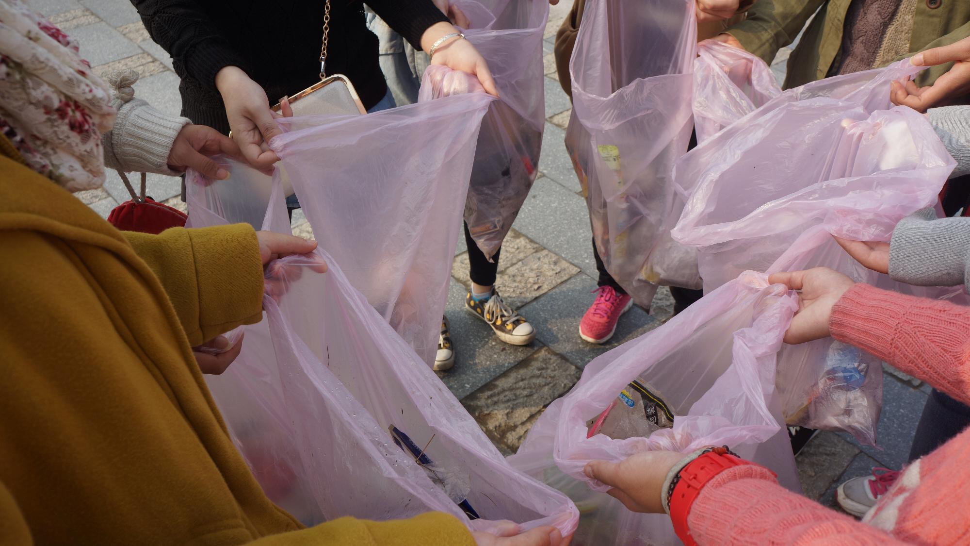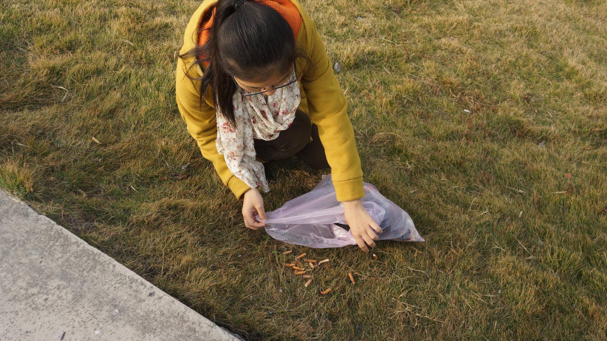 早上8点20分,同学们在学校西门口集合,步行至江边。天气微凉,略有薄雾,同学们饶有兴致地向钱塘江边前行,一路上充满了欢声笑语。在学源街与之江东路路口,同学们被分成两至三人一组,各组分领垃圾袋,开始了环保宣传行动。一路上,随处可见还带着清晨未干雨露的被遗弃的餐巾纸、食品包装袋等垃圾,同学们细心地将这些垃圾拾起放入垃圾袋内。行至学林街附近,同学们走上沿江大道,江边芦苇茂盛,树木错落排布十分悦目。然而,草坪上依旧可见不少的垃圾,以烟头居多,还有些许纸屑和果皮。见此情形,同学们弯下腰,耐心地将它们一一捡起,引来路人驻足观看。2个小时的环保行动结束后,大家的袋子中都装满了垃圾。欣慰满足之余同学们也有不少的遗憾和担忧,钱塘江边的环保情况并不如人意,大家的环保意识仍有待提高。