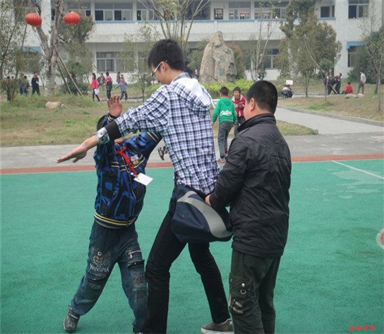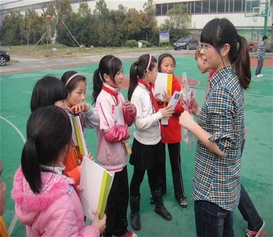 学校老师还将孩子们带到操场排队集合,把孩子们交给了这群大学来的“小老师”们。孩子们都很活跃,主动和同学们交谈、玩游戏,大学生与小学生大手拉小手,很快就打成了一片,一起玩起了老鹰捉小鸡、丢手绢等小游戏。在交谈中,线上看足球