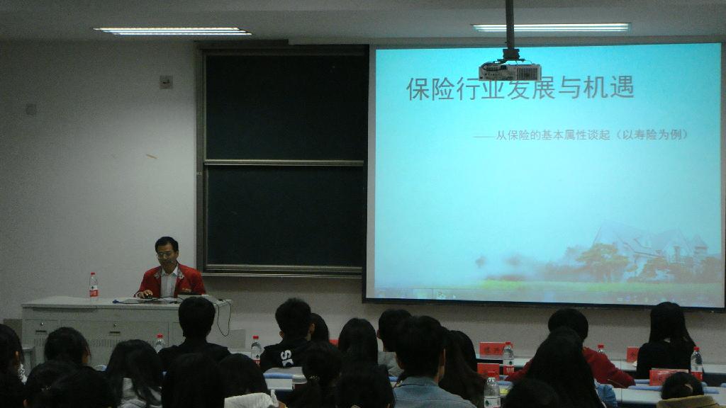 讲座很快接近了尾声。思维的交流总是能碰撞出思想的火花,陈经理的报告和解答精彩详细,让在座的同学们都获益匪浅。本次讲座不仅为同学们介绍了当今社会保险业的行业发展动态和前景,也为同学们在以后的专业发展道路上提供了更明确的方向。
