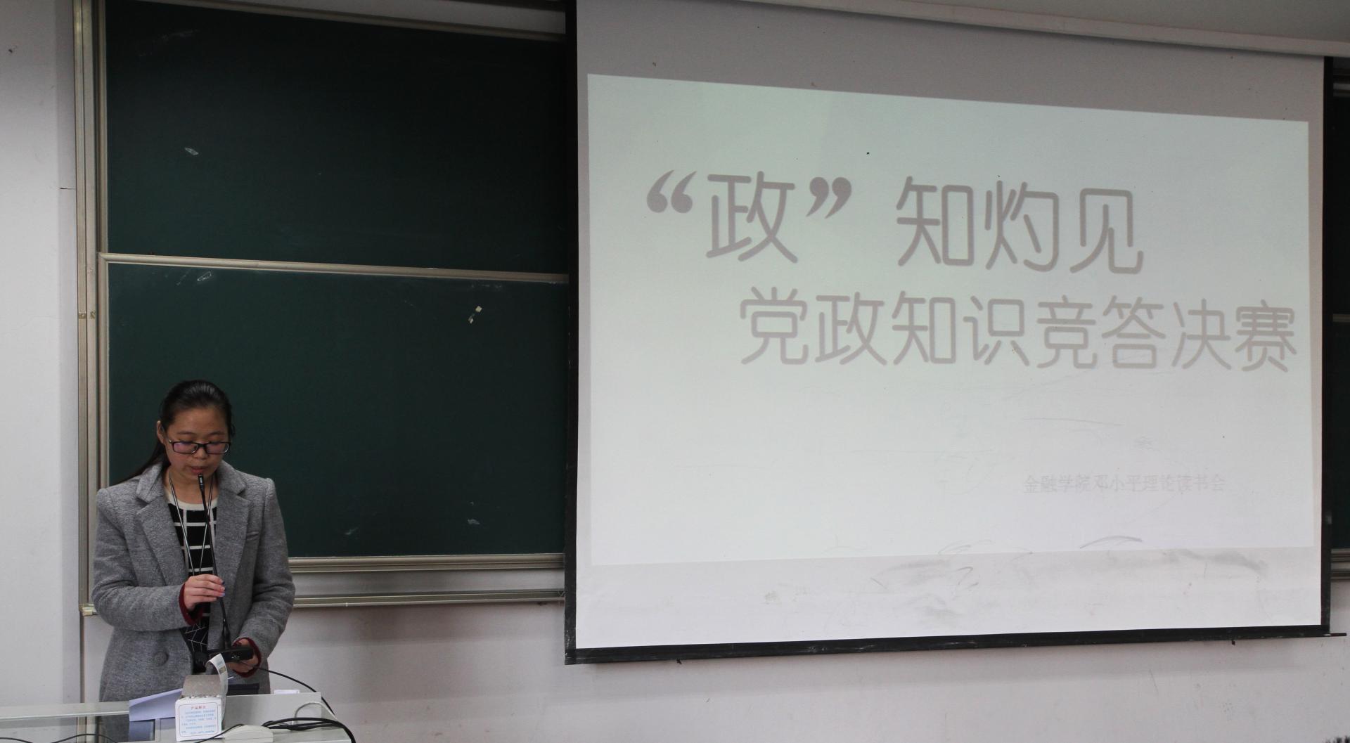 比赛伊始,主持人介绍了本次大赛的目的以及出席本次比赛的嘉宾和评委,分别是金融学会会长王宁宁,三个代表重要思想研究会代表,国际金融学会代表,公司金融学会代表,保险学会代表,本次决赛共有十二名选手参加。