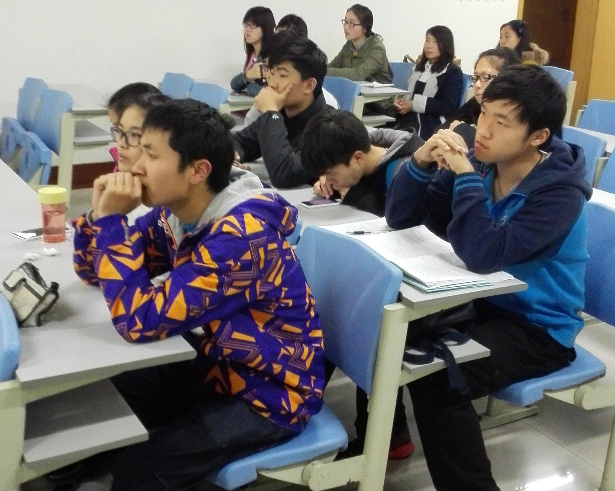 讲座开始,邵勇在简单的自我介绍之后讲述了自己参加电子沙盘模拟(ERP)比赛的经历。接着他详述了ERP的意义及ERP中的一些基本概念:比如折旧、应收账款、财务费用等等专业名词,这些熟悉的名称让同学们将会计中的概念与之充分联系起来,减少了对ERP的陌生感。然后,邵勇讲述了ERP中的职位分配问题,强调了处理好分工与合作之间关系的重要性。最后,邵勇给定初始条件,让同学们现场试着计算不同季度的产能以及需要的原料,同学们均拿出纸笔进行计算,或思考,或讨论,表现出极大的热情。在讲座结束之前,他还和同学们分享了一些自己就业的经历,让同学们对今后的就业状况有了更多了解。