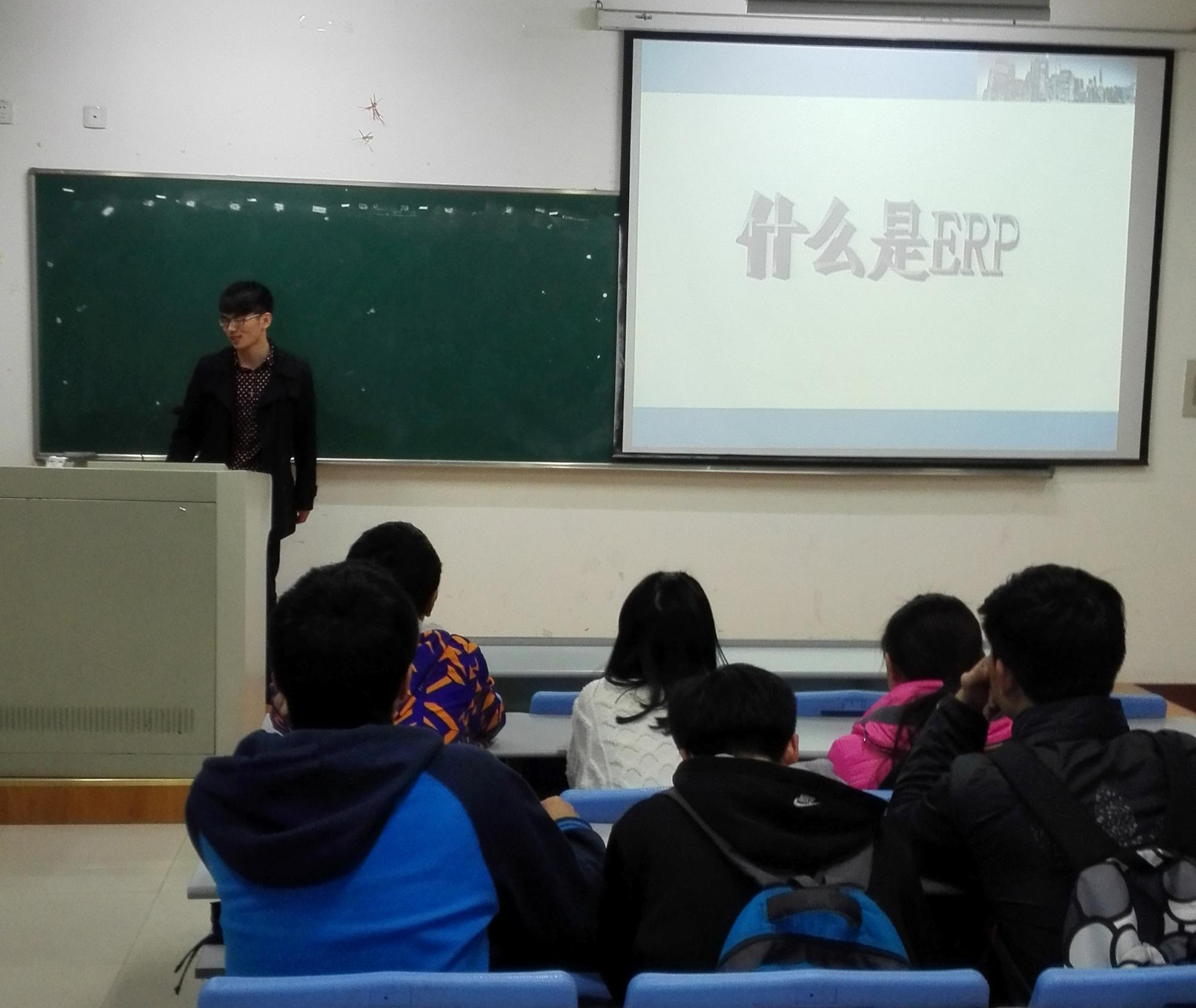 楼209开讲,本次讲座由信用管理前会长、公司金融学会前副会长邵勇主讲。在本次讲座中,邵勇向前来参与讲座的同学们介绍了ERP的相关知识,分享了自己的一些参赛经历,并就工作就业方面和同学们作了交流。
