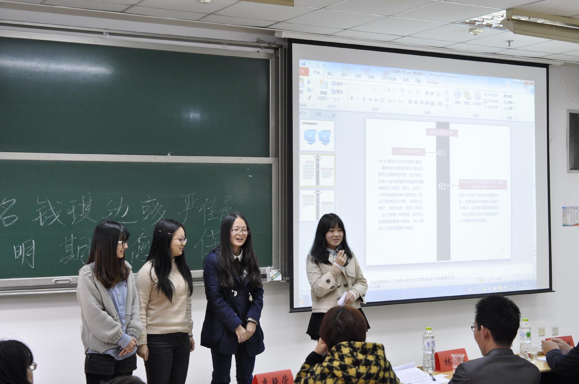在校际对抗的环节中,各队可谓都准备充分,竞争激烈。每支队伍的险种都十分有创意。房屋转租、非法载客后的车祸赔偿,财经大学三组成员将生涩难懂d事例用小品形式生动形象地展示给评委及观众,同时对工商大学队伍的问题也有条不紊地进行了分析。分析之后的答辩环节,经过精心准备的选手们面对评委一阵见血的问题对答如流。评委们对选手们分析环节中的疑惑及不足提出疑问,让选手们获悉自己分析过程中的不足之处,获得进步空间。同时,也让观众开阔了眼界,丰富了专业知识。