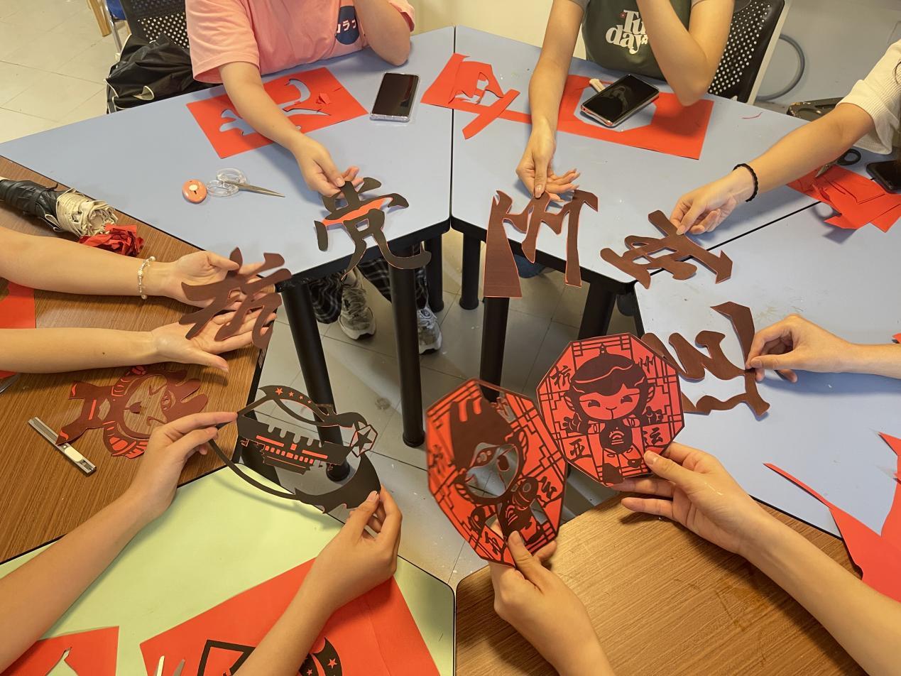 本科生第二、第五党支部联合组织支部党员于桃李苑3幢活动室开展韵味红影剪纸活动,深刻实践体会“党建+非遗文化+亚运”碰撞的魅力,激发广大学生党员迎接亚运盛会的热情与活力。