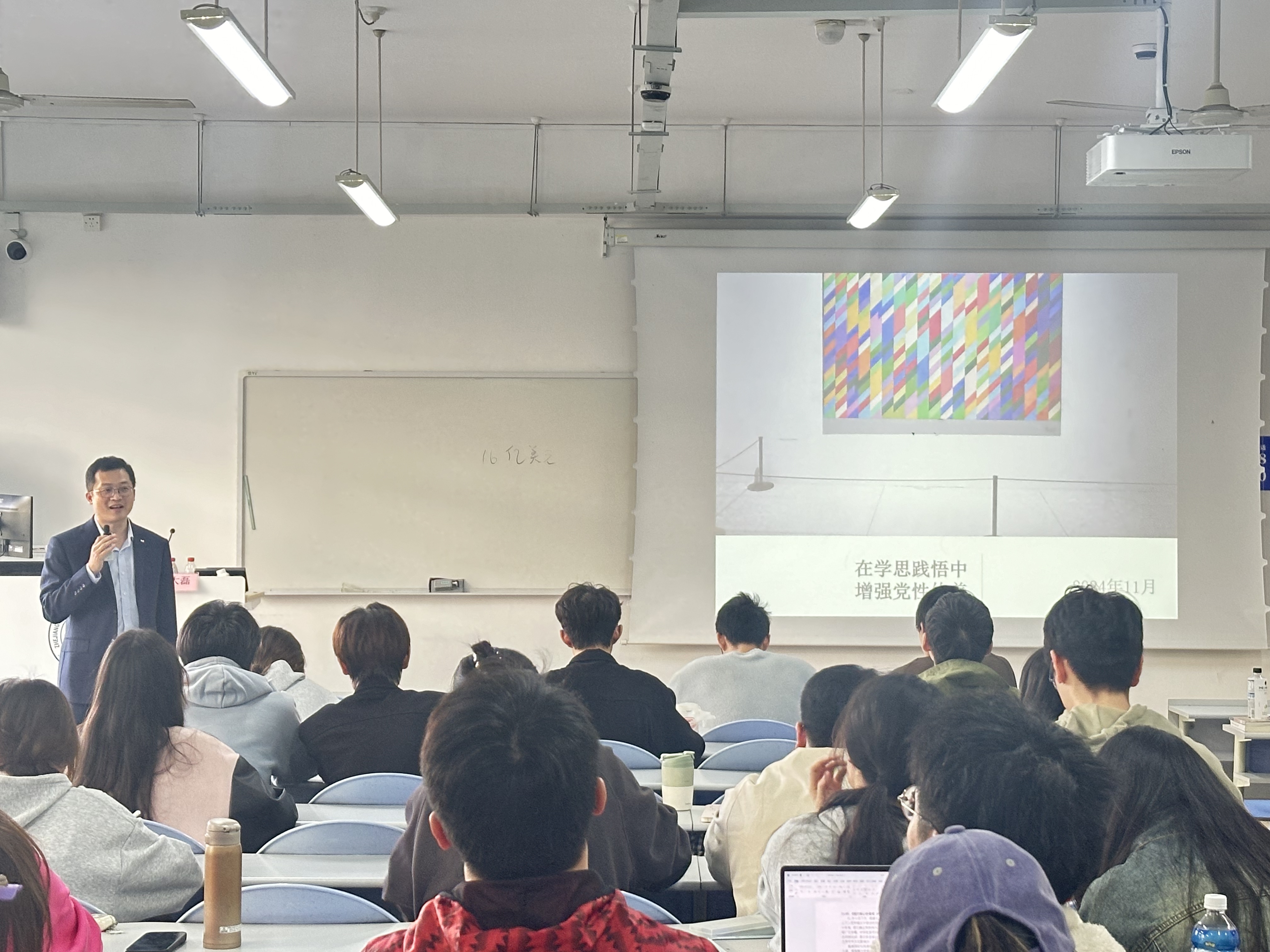 张大磊围绕《在学思践悟中增强党性修养》这一主题,向同学们阐述了树立正确入党动机和党史学习的重要性。他通过讲述以毛泽东、邓小平等为代表的老一代革命家的生平事迹,让同学们感悟党史的魅力,提升党性修养。最后,张大磊学长从自身学习工作的经验出发,鼓舞大家坚定理想信念,把握时代下的人生机遇。大家要在学习和实践中增强政治素养,汲取奋进力量,书写青春华章!