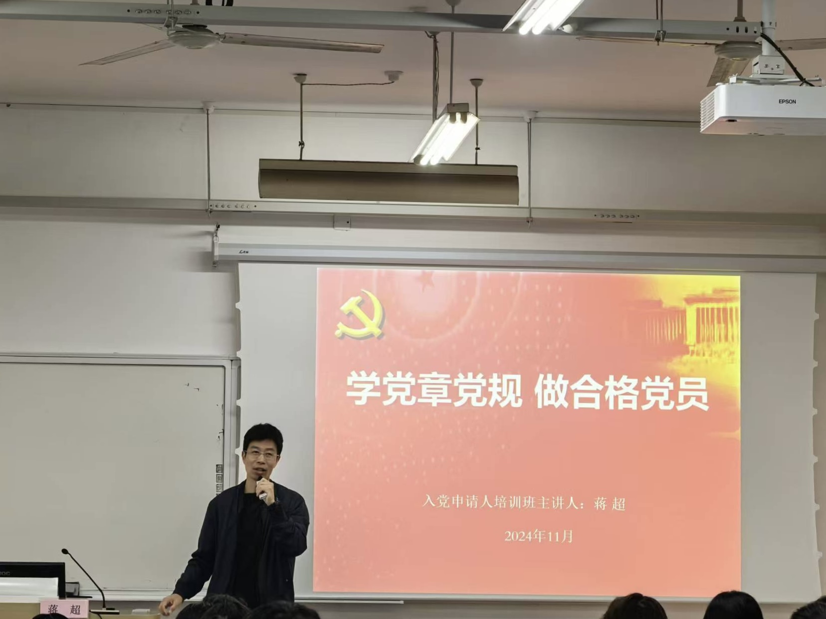 蒋超以《学党章党史,做合格党员》为主题,详细讲授了中国共产党的三大发展阶段。同学们怀揣敬意、带着思考,沉浸式走进党史,从中汲取磅礴力量。蒋老师带领大家对照党章找差距,切实将所学化为日常点滴,化作冲锋在前的担当、服务群众的热忱,在任何情况下都要做到政治信仰不变、政治立场不移、政治方向不偏,向着民族复兴的新征程稳健出发。