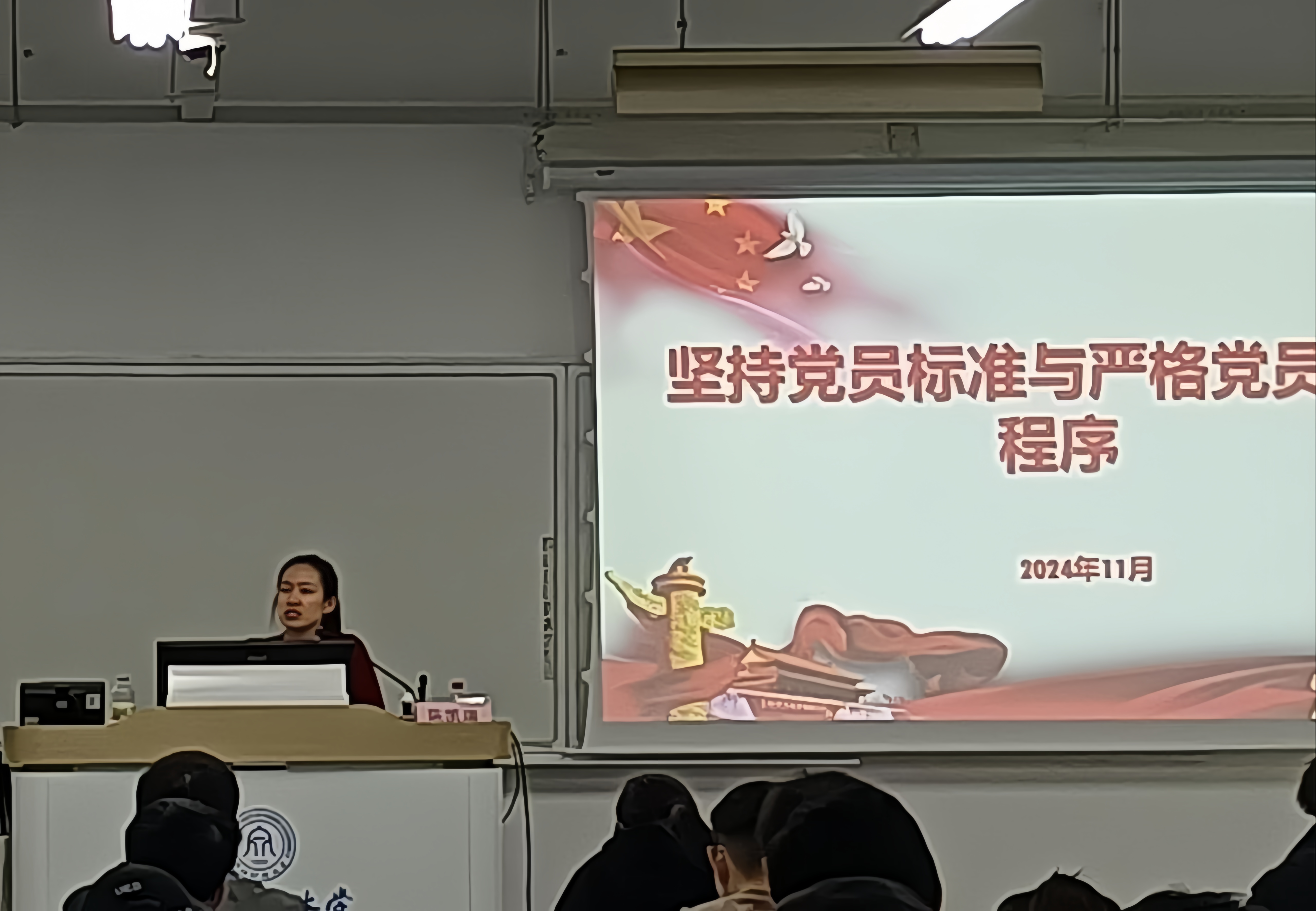 陈凯瑞围绕《坚持党员标准与严格党员发展程序》这一主题,紧扣党员发展过程中的关键环节,为同学们答疑解惑。课上,她介绍了在新形势下发展党员的新要求,详细讲解了发展党员工作流程的5大阶段,25个环节。重点强调了入党申请书的基本格式和注意事项、发展党员的阶段及时间逻辑。最后,陈老师寄语大家以高标准要求自己,心怀热忱向党组织靠拢,争取早日加入党组织。