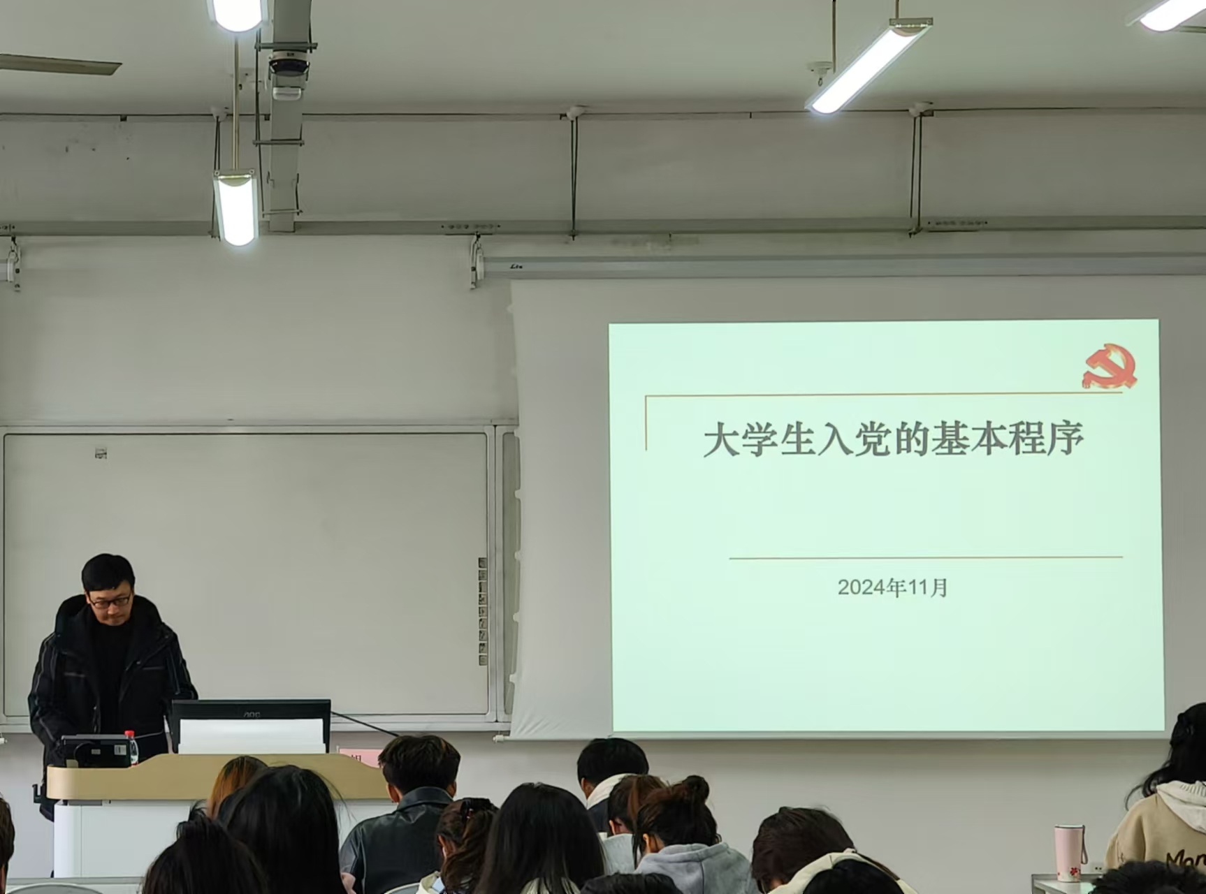胡恺以《大学生入党的基本程序》为主题,抽丝剥茧讲解共产党员发展的标准细则,复盘真实入党流程案例,分享优秀党员成长心得。通过这堂党课的学习,大家深入学习了党的基本理论和基础知识,提高了同学们自身的思想和政治素质,更深入了解到发展党员工作程序的详细流程,激励同学们时刻以党员标准丈量言行,更努力地向党靠拢。