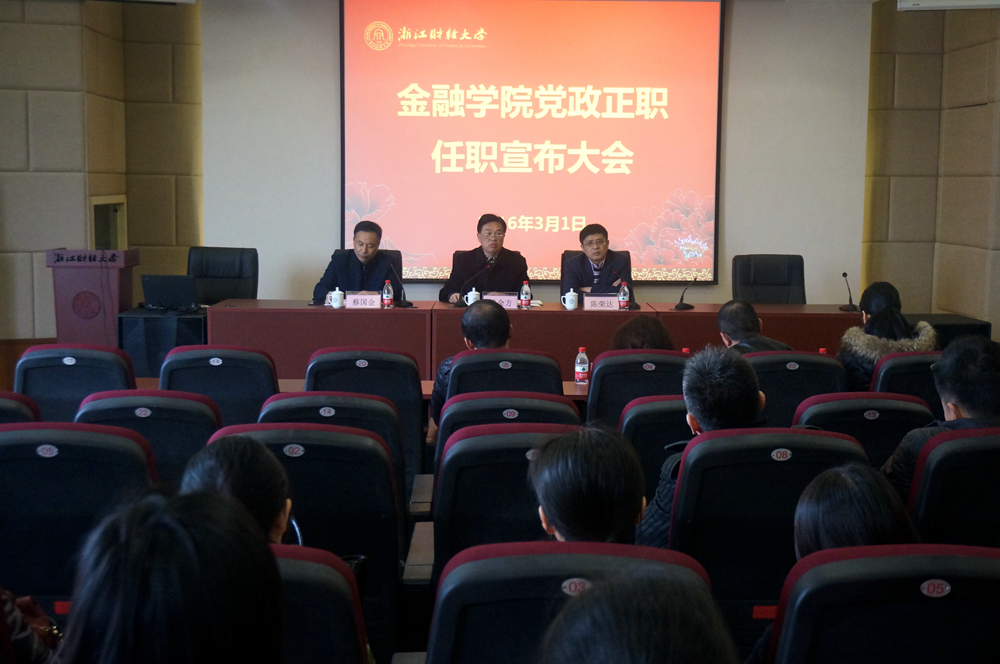 2016年3月1日下午,足球直播线上看 在足球直播线上看 楼二楼报告厅召开党政正职任职宣布大会。校党委委员、纪委书记陈金方出席会议,足球直播线上看 全体领导班子成员、校党委组织部干事和足球直播线上看 教职员工参加会议。会议由足球直播线上看 院长陈荣达主持。根据大会议程,陈金方书记宣读干部任职文...