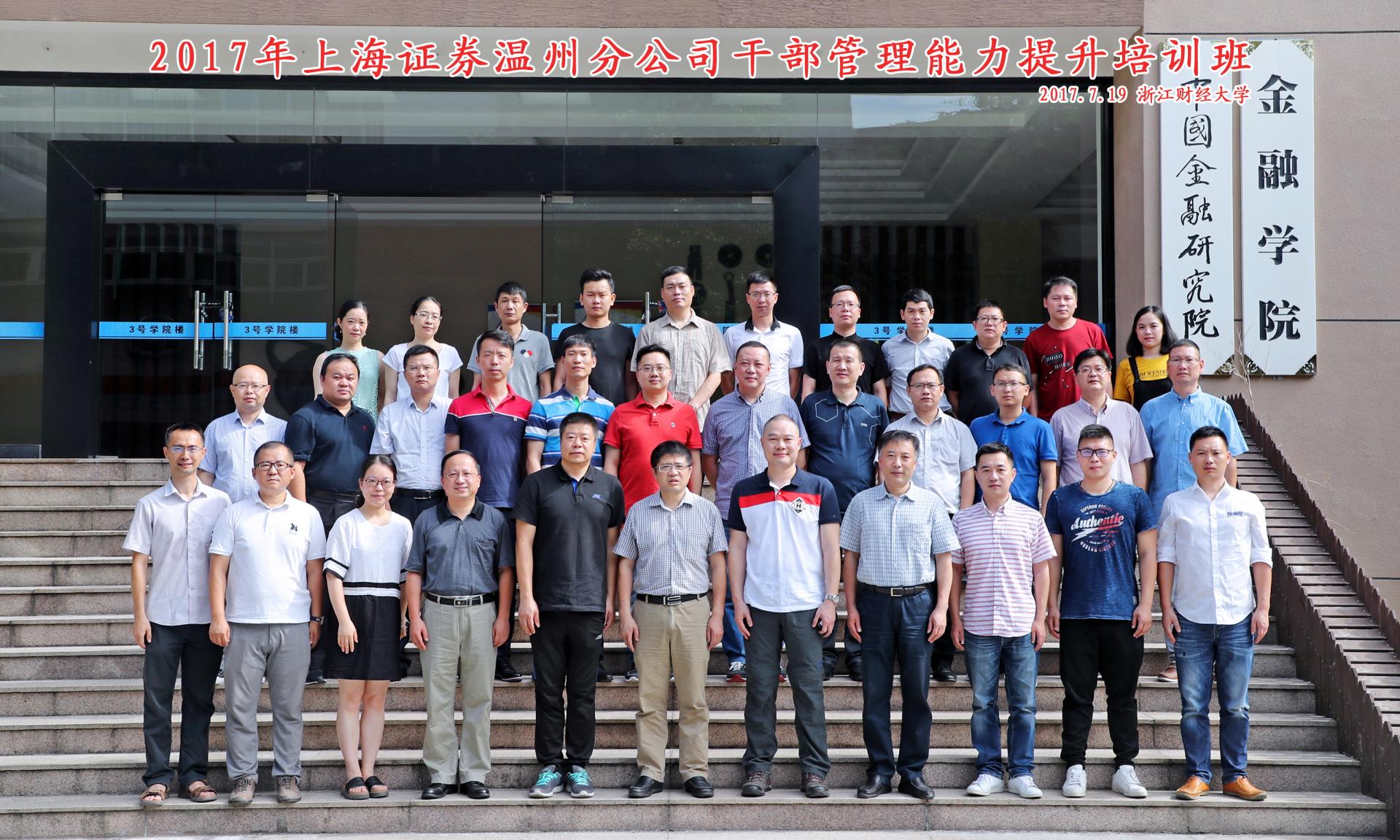 2017年7月19日上午,2017年上海证券温州分公司干部管理能力提升培训班在足球直播线上看 楼二楼学术报告厅隆重举行开班仪式。开班仪式由蔡国金书记主持,陈荣达院长、上海证券温州分公司蔡晓敏总经理等出席本次会议,上海证券温州分公司营业部负责人等管理干部近30...