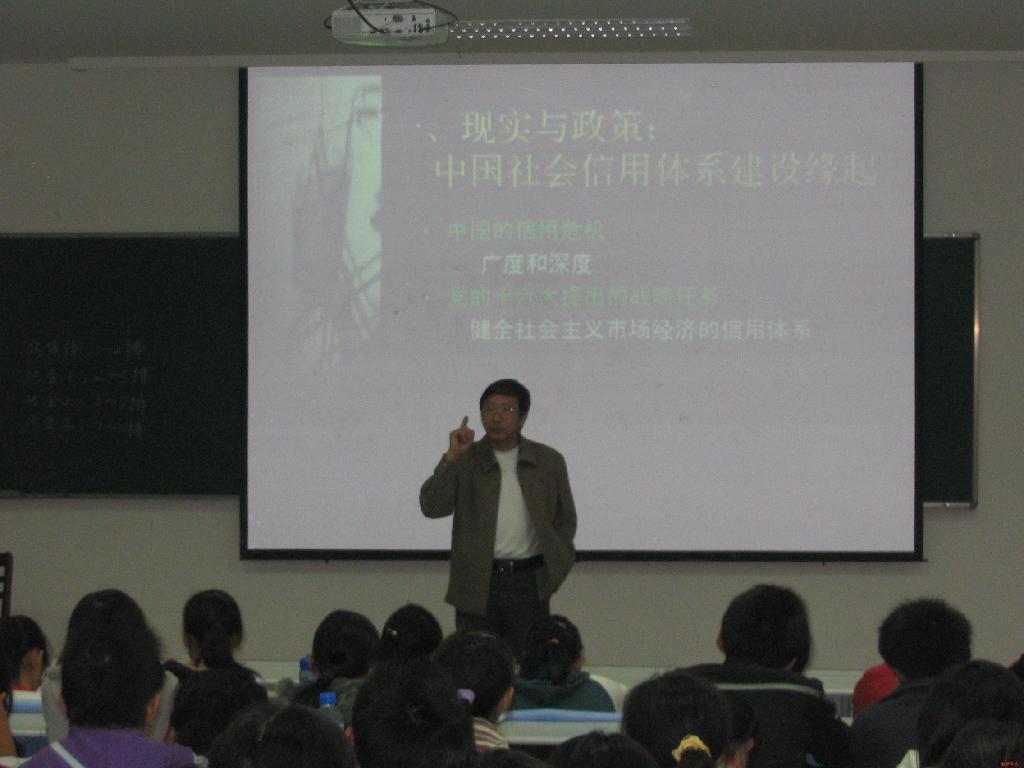 管博士以其幽默诙谐的语言,深刻入木的分析细致地为大家讲解了构建社会信用体系的重要性与意义,以及一些具体实践措施。讲座中,管博士用他那生动的比喻和深刻的分析赢得了在场同学的阵阵喝彩。管博士话语精湛,谈吐幽默,一篇篇生动的论述,使同学们清楚地认识到构建社会信用体系的重要性;一句句深刻的分析,又让同学们看到我国社会信用中存在的问题。讲座中,管博士适时还向同学们提出问题,“有没有信用与讲不讲信用之间的区别?”启发大家深入思考,同学们也都积极举手,表达了自己的看法。同学们新颖的观点同样博得了管博士的称赞。