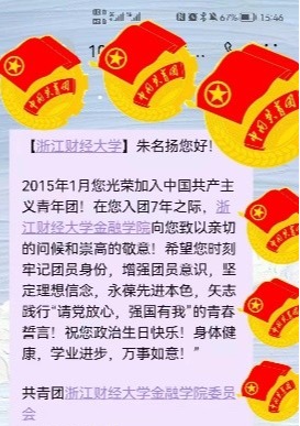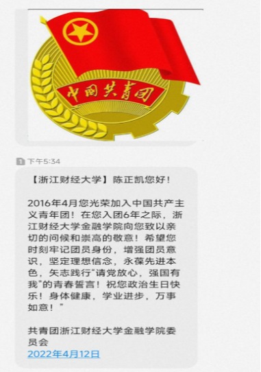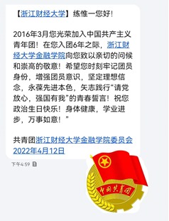 “金融学子您好!2015年5月您光荣加入中国共产主义青年团!在您入团7年之际,足球直播线上看