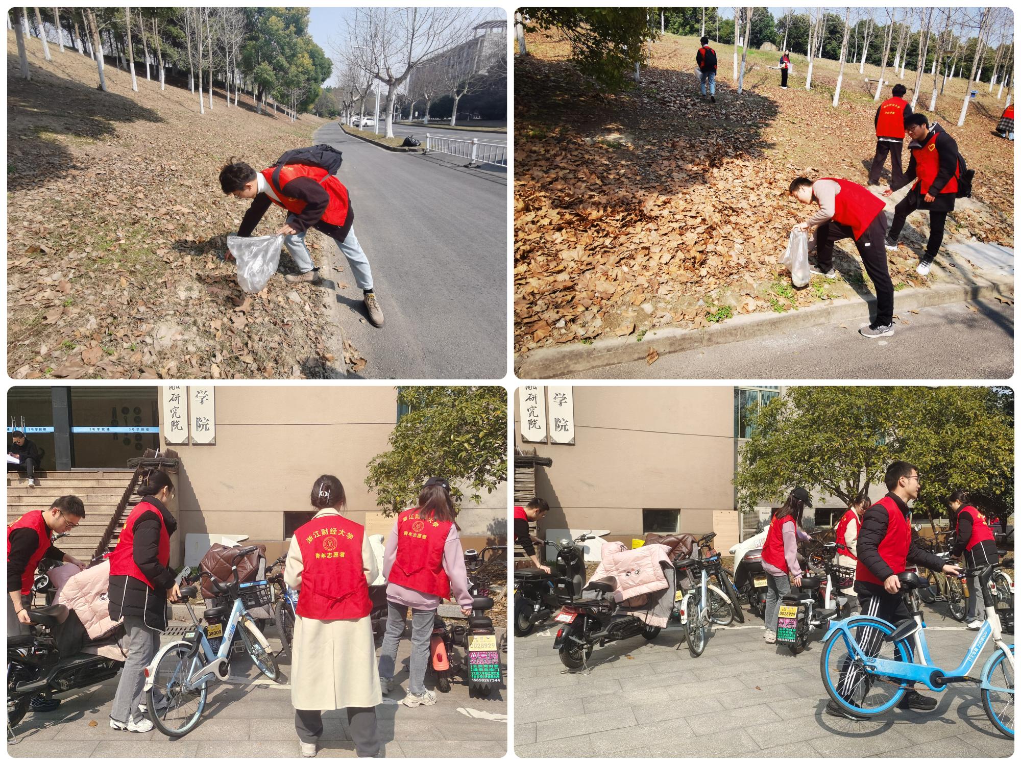 楼前、地下车库的非机动车整理摆放、对校园的环境进行清理等,大家用实际行动践行新时代的雷锋精神,美化了校园环境,倡导了文明理念,展现出青年党员带头不怕脏、不怕累、学雷锋我当先的的良好精神风貌,让雷锋精神在新时代绽放更加璀璨的光芒。