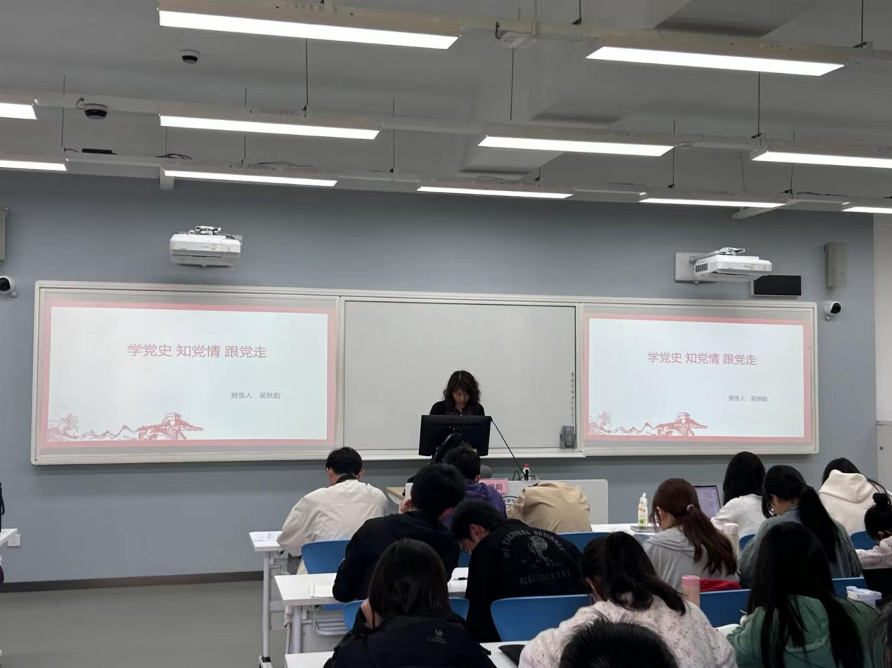 吴轶韵《学党史 知党情 跟党走》为主题,带领同学们回顾了党的光辉历程,深入了解党的奋斗历史。党史的学习不仅激发了同学们的历史认同感与国家使命感,而且让同学们在党的光辉历程中汲取到了经验教训,培养起更加完善的政治素养和道德观念。最后,老师希望同学们能够跟党走,传承红色基因,积极投身到新时代的伟大事业中,为实现中华民族伟大复兴的中国梦贡献自己的力量。