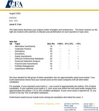 CFA考试成绩单样张