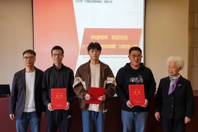 “价值投资播种基金”之“投资类课程建设奖励专项”旨在开展投资类课程建设,由徐峰老师作为团队负责人,组建投资类课程建设团队;钟立新、周海珍、金骋路、郑燕巧四位老师获2021年“价值投资播种基金”之“匠人园丁教学科研鼓励奖”;章宇康、王煜诚、刘硕三位同学主持的课题获2021-2022学年“价值投资播种基金”之“价值投资研究专项课题”立项;张灵睿等10位同学获2021-2022学年“价值投资播种基金”之“星辰大海投资类课程奖”。孙旭东、李仙娇、李启兵、王聪聪、蔡国金依次为立项及获奖的老师们、同学们颁奖。
