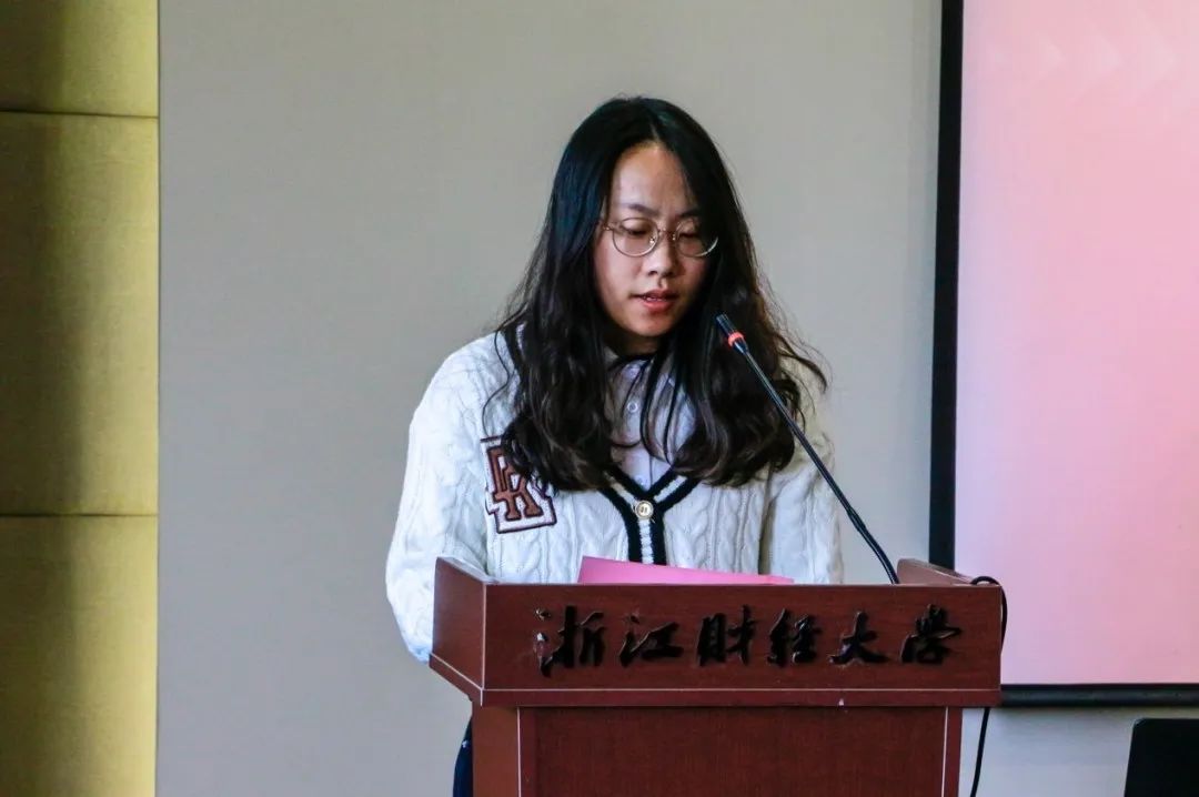 20金融1班卢美代表获奖学生发言。她很感激能获得这次“明栋基金”助学奖,这是对她学习热忱度上的一种激励和鼓舞,也是对贫困学子的一种释负。并表示在未来也会将这项荣誉转化为前行的动力,不忘初心、勇于奋斗,传承“明栋基金”助人精神,用实际行动来回馈社会。