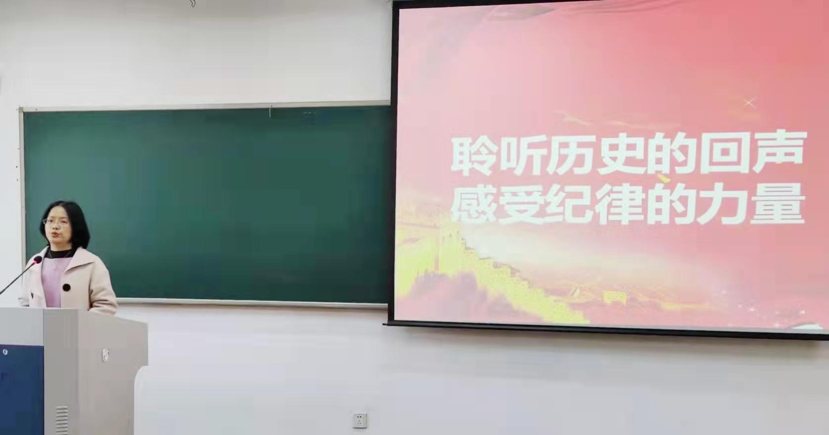 党委副书记徐丽玲以《聆听历史的回声,感受纪律的力量》为主题,向大家介绍了中国共产党的四个历史时期,并通过讲述党的历次重要会议、重要时间节点中出台的各项有关党的纪律建设的政策文件,引出党在新的时期全面从严治党的新要求、新部署、新任务、新举措和新成效,并向学员们通报了相关领域了违纪案例,加深了警示教育实效。最后徐老师强调了作为高校学生党员应遵守的纪律要求:说话有“规范”、做事当“示范”、为人讲“风范”。