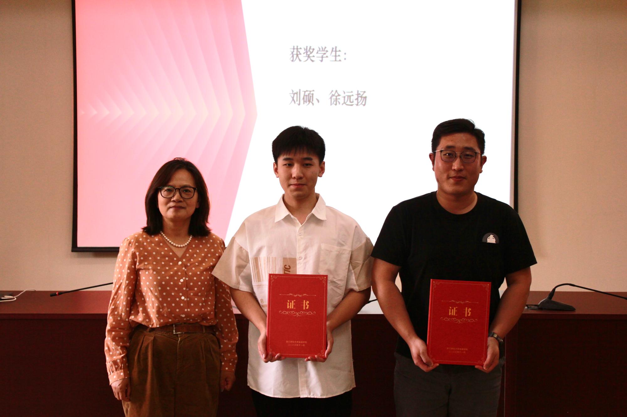 家境经济困难的学生勤奋学习、努力进取,在德、智、体、美、劳等方面取得更加全面的发展。本次共有本次共有马学豪、杨艳艳、李微、阿依尼尕尔·玉苏音、王忠杰、卢美、王品、楼一凡、徐佳慧、黄小丹、陈钺、文秋云、冉怡婷、巫佳莉、袁静、李孟丹等16名同学获得“明栋基金”助学奖,“明栋基金”管理委员会主任楼栋和秘书长王丽荣为获奖同学颁发证书及奖杯。