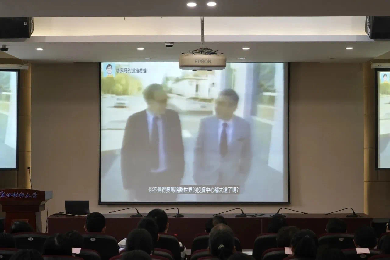 随后,“价值投资播种基金”捐赠人李启兵校友特地挑选了一段巴菲特接受采访的视频与在座师生分享。巴菲特在采访中回答了对“当成千上万个好球从你身边投过,你会在何时挥起你的棒球棒”的理解,借此机会,校友希望大家通过价值投资研究寻找自己最好的答案。