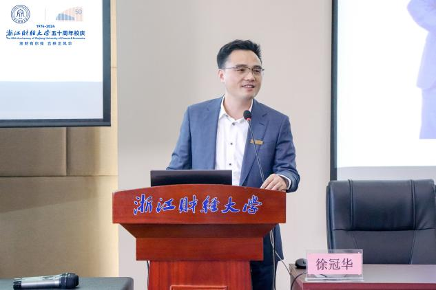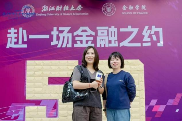 2003届校友徐冠华深情表达对浙财大的爱,强调校友与学校的情感共同体,鼓励大家为国家发展贡献青春力量。金融学子和校友们深受鼓舞,应援声接连不断。